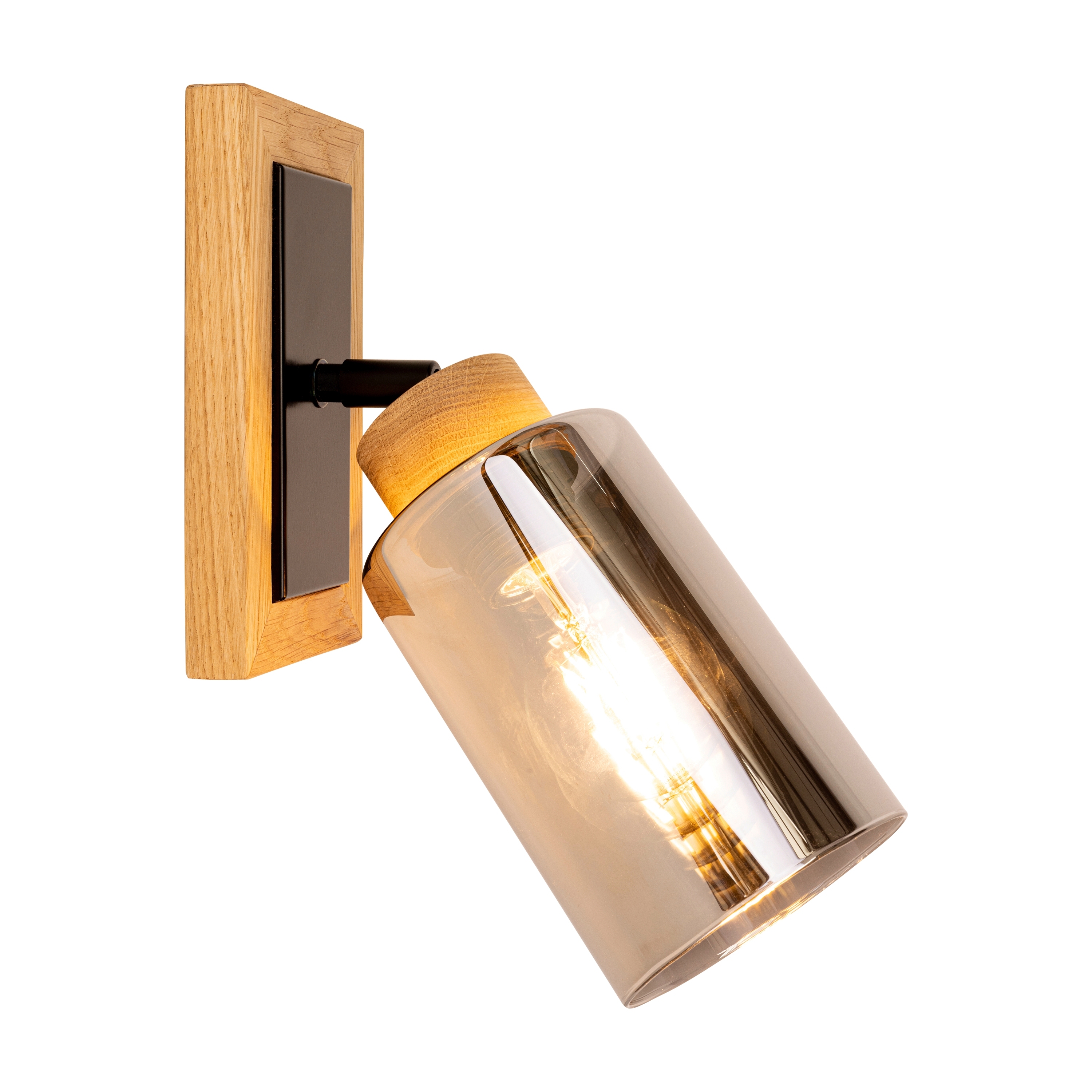 Braun - Schwarz - 10 x 17 cm - Holz - Metall - Rauchglas - 1-flammig