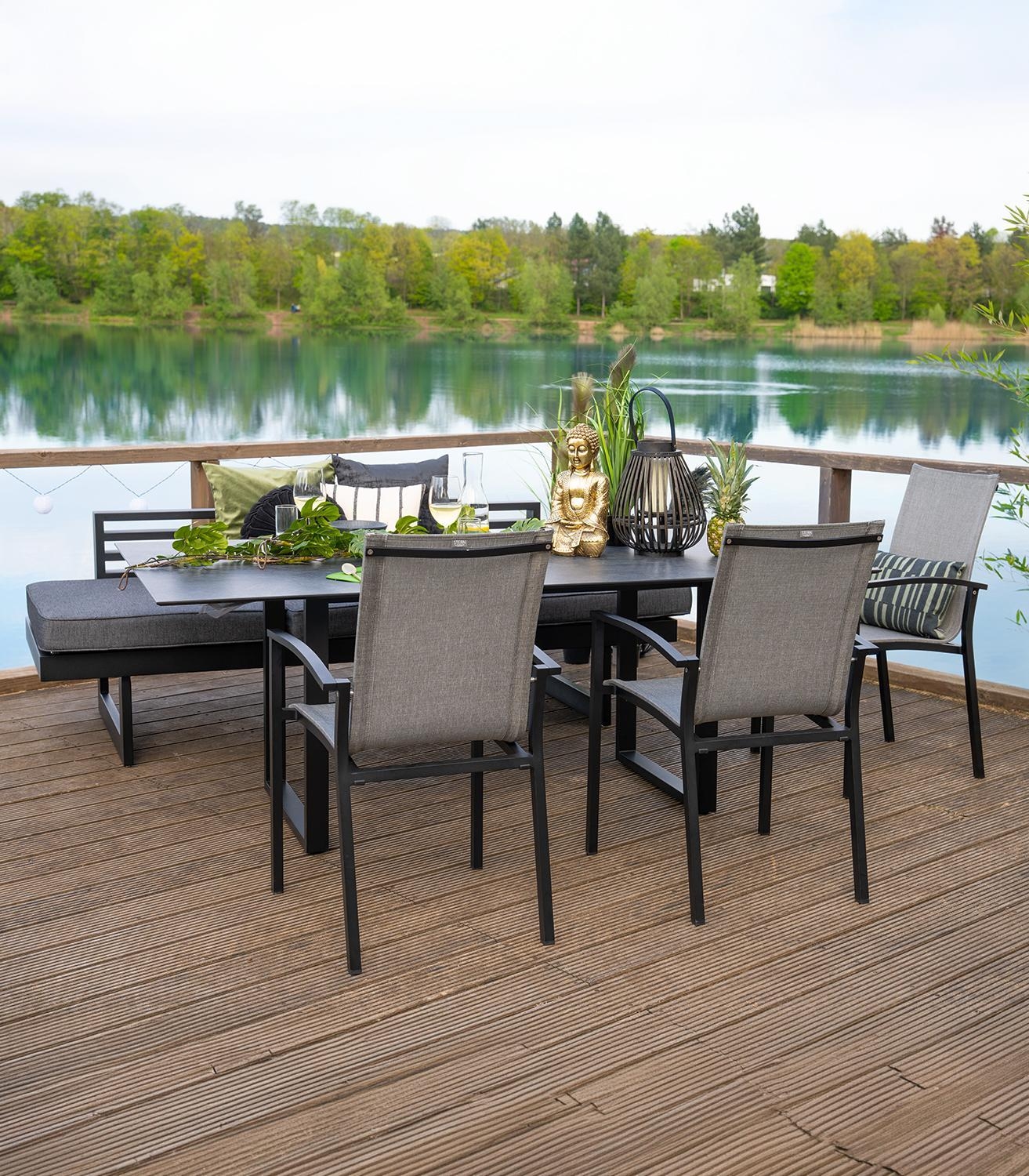 Anthrazit - Textilen - Aluminiumrahmen - Teakholz - inkl. Kissen