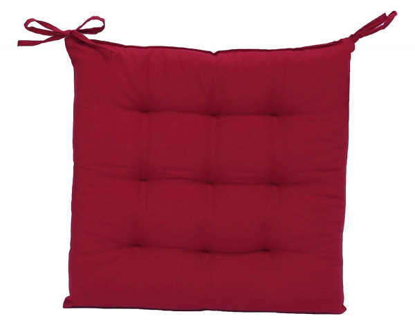 Das Sitzkissen NILS verleiht Ihren Stühlen den letzten Schliff. Wie sich die Erscheinung Ihrer Möbel mit einer simplen Änderung der Stuhlkissen verändert erfahren Sie, wenn Sie es selbst probieren. Komplett in der absoluten Trendfarbe Bordeaux gehalten veredeln Sie mit diesem Sitzkissen Ihre Holz- oder Kunststoffstühle. Besonders bequem sind diese Stuhlkissen dank einer Dicke von 8 cm. So sitzen Sie auch für längere Zeit weich gepolstert. Zu Befestigung an Ihren Stühlen besitzt dieses Sitzkissen zwei Bindebänder. Da helle Stuhlkissen doch sehr leicht dreckig werden können ist dieses bei 40 Grad in der Maschine waschbar.