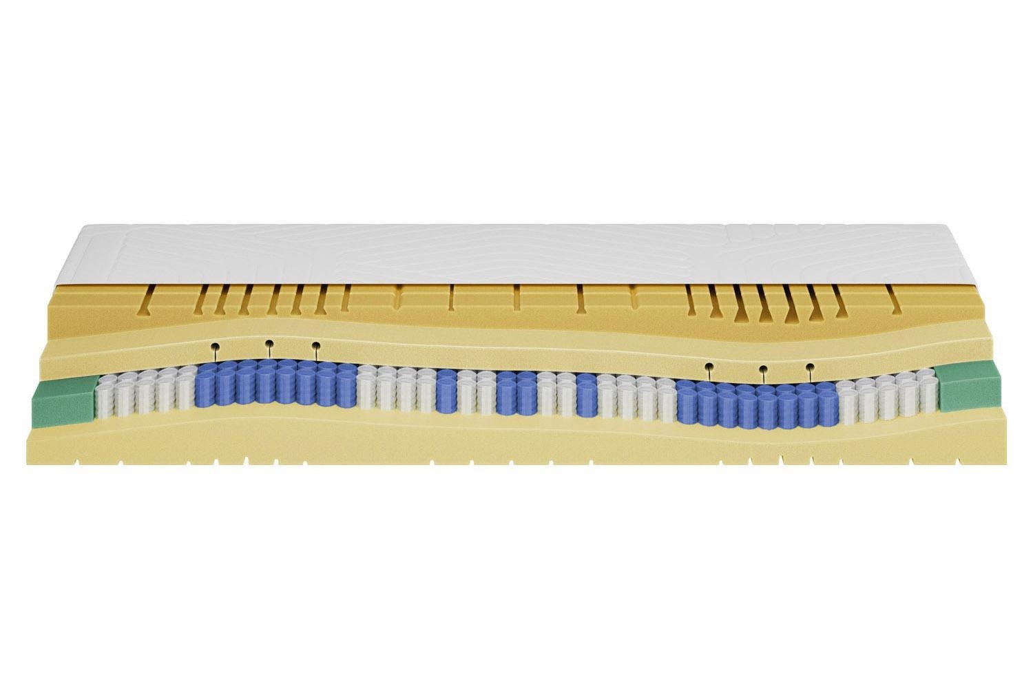 | Lieferumfang: | 1 Sieben-Zonen-Taschenfederkernmatratze mit Kaltschaumunterplatte, Schaumstoffauflage aus Memoryfoam und abnehmbarem Bezug |