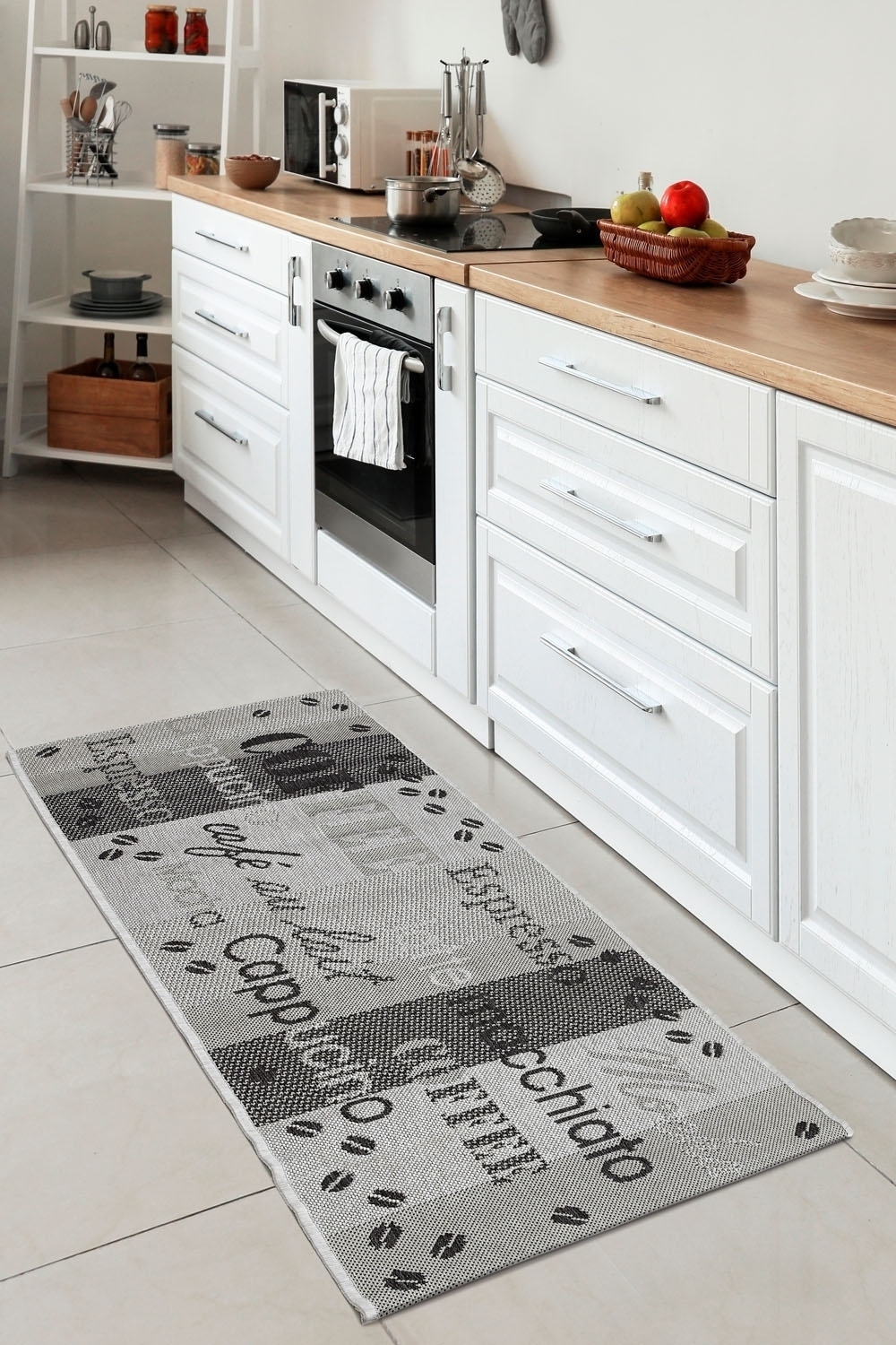 Hellgrau - Dunkelgrau - 50 x 150 cm - mit Kaffee Motiven und Schriftzug