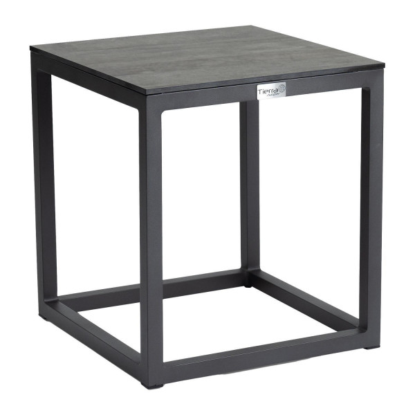 Der Garten-Loungetisch RIO verfügt über eine Tischplatte aus HPL in Grau und ein Gestell aus pulverbeschichtetem Aluminium in Anthrazit. Mit einer Breite von 40 cm, einer Höhe von 45 cm und einer Tiefe von 40 cm eignet er sich als Ergänzung für Loungemöbel und Gartenmöbel-Sets.