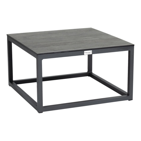 Der Garten-Loungetisch RIO verfügt über eine Tischplatte aus HPL in Grau und ein Gestell aus pulverbeschichtetem Aluminium in Anthrazit. Mit einer Breite von 60 cm, einer Höhe von 35 cm und einer Tiefe von 60 cm eignet er sich als Ergänzung für Loungemöbel und Gartenmöbel-Sets.