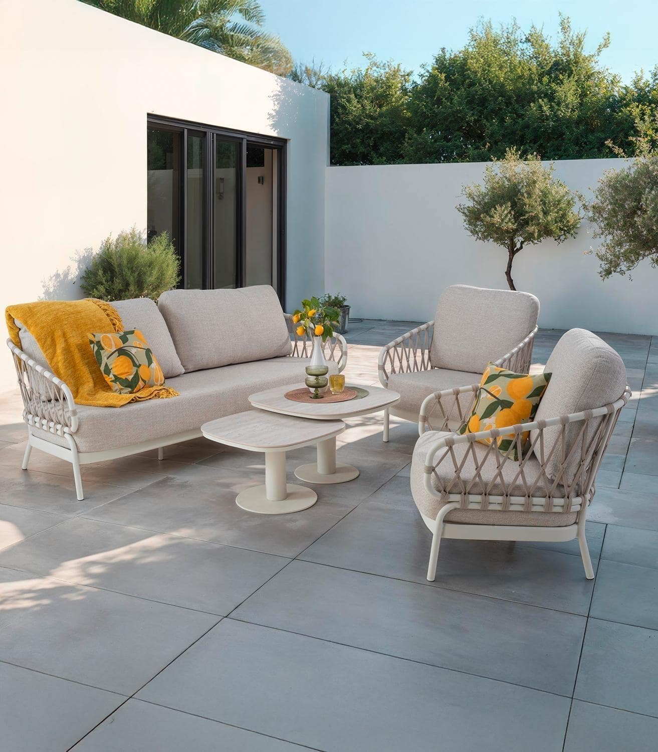 Beige - Cremeweiß - Hellbraun - Aluminiumgestell - Olefin - mit Kissen