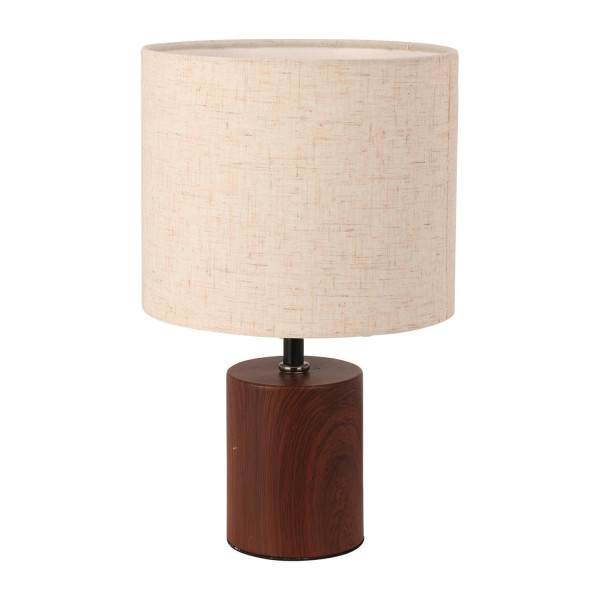 Die Tischlampe MARIAN ist aus Metall in Holzoptik gefertigt und mit einem weißen Textillampenschirm ausgestattet. Sie wird über einen Schnurschalter bedient. Die Lampe hat einen Durchmesser von 18 cm und eine Höhe von 29,5 cm. Sie ist für ein Leuchtmittel mit E14-Fassung ausgelegt, das nicht im Lieferumfang enthalten ist. Das Leuchtmittel ist austauschbar und kann eine Leistung von bis zu maximal 40 Watt haben.