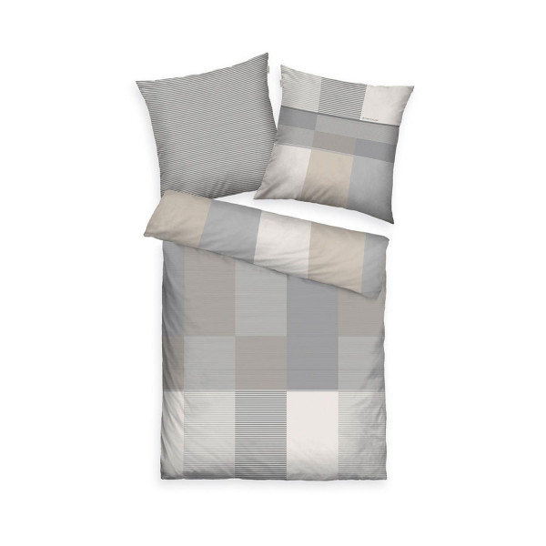Die Satin-Wende-Bettwäsche KARO von Tom Tailor aus 100 % Baumwolle bietet mit ihrem karierten Muster in Grau, Weiß und Beige einen stilvollen Look. Der Deckenbezug misst 155 x 220 cm, der Kissenbezug 80 x 80 cm. Beide Teile sind mit praktischen Reißverschlüssen versehen. Die Bettwäsche ist bis 60 °C waschbar und trocknergeeignet, was ihre Pflege erleichtert. Im Lieferumfang sind ein Bettbezug und ein Kissenbezug enthalten.