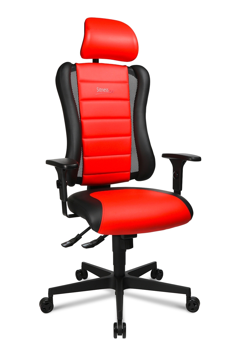 - Mit der Synchronmechanik lässt sich die Sitz- und Rückenlehnenneigung zeitgleich verstellen. Über eine körpergewichtsabhängige Federkrafteinstellung ist die Sitzposition zusätzlich stufenlos arretierbar.
