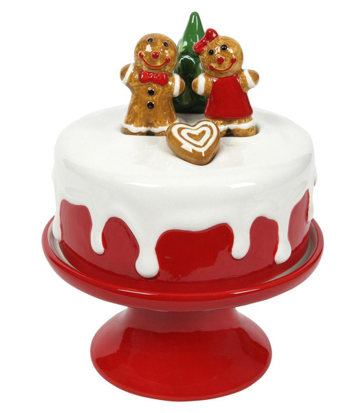 Der Tortenständer MACHELA aus Porzellan präsentiert sich in festlichem Rot und Weiß und ist ein echtes Highlight auf jeder Kaffeetafel. Mit einem Durchmesser von 16 cm und einer Höhe von 20 cm bietet er Platz für kleine Kuchen, Gebäck oder Pralinen. Verziert mit liebevollen Details wie einem Schokoherz, Lebkuchenmännern in Braun und einem grünen Tannenbaum aus Porzellan, verbreitet er weihnachtliche Stimmung. Dank des Standfußes und der passenden Glocke bleiben Leckereien dekorativ präsentiert. Handwäsche wird empfohlen.