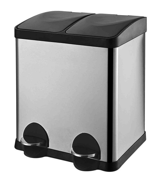 Der Edelstahl-Treteimer ECKBERT von Home4You verfügt über zwei Kunststoffeinsätze mit einem Fassungsvermögen von je 15 Litern und zwei schwarze Deckel. Mit einem großzügigen Fassungsvermögen von 30 Litern ist er nicht nur praktisch, sondern auch ästhetisch. Der weiche und leise Tretmechanismus macht die Entsorgung angenehm und bequem. Ein stilvoller und funktionaler Abfalleimer für Ihr Zuhause.