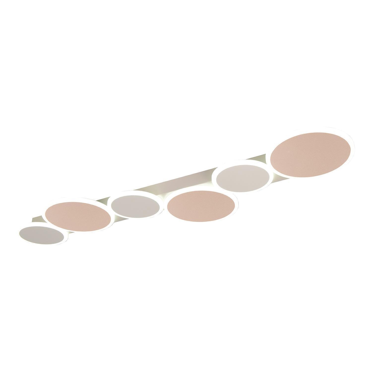 Die LED-Deckenleuchte OVELA der Marke TRIO Leuchten wird aus Metall in den Farben Braun, Grau und Weiß gefertigt. Diese Deckenlampe besitzt eine Breite von 100 cm, eine Tiefe von 30,5 cm sowie eine Höhe von 4,5 cm. Das austauschbare LED-Leuchtmittel erbringt eine Leistung von 34 Watt und erzeugt einen Lichtstrom von 3900 Lumen. Über die im Lieferumfang enthaltene Fernbedienung lassen sich die Helligkeit dimmen und die Farbtemperatur in einem Spektrum von 2700 bis 6500 Kelvin regulieren. Zudem verfügt die Zimmerleuchte über eine Memory-, Nachtlicht- und Timerfunktion.