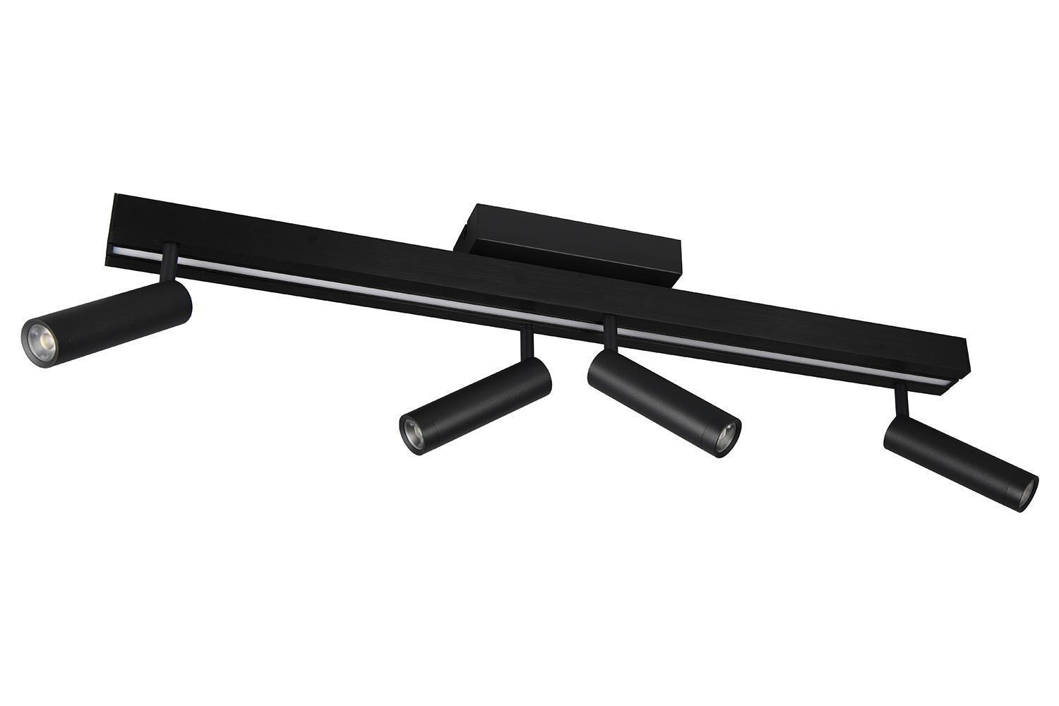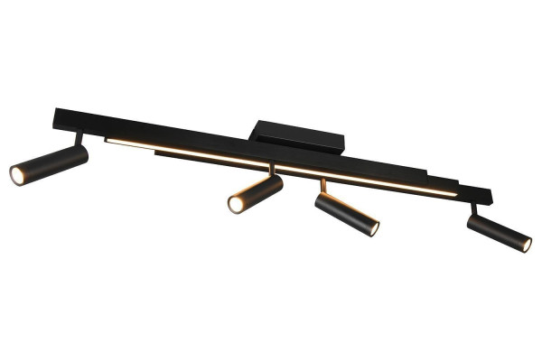 Die LED-Deckenleuchte ZENO besteht aus mattschwarzem Metall und ist mit einer Hauptlichtquelle sowie zusätzlichen Strahlern ausgestattet, die getrennt voneinander schaltbar sind. Die Breite der Leuchte lässt sich verstellen, während die Strahler über bewegliche Lampenschirme verfügen. Zudem können Farbtemperatur und Helligkeit angepasst werden, was über die mitgelieferte Fernbedienung steuerbar ist. Die Leuchte misst 133 cm in der Breite, 23 cm in der Höhe und 8,5 cm in der Tiefe. Sie ist mit einem fest verbauten LED-Leuchtmittel ausgestattet, das 34 Watt Leistung erbringt, eine Helligkeit von 4100 Lumen erzeugt und einen einstellbaren Farbtemperaturbereich von 2700 bis 6500 Kelvin bietet.