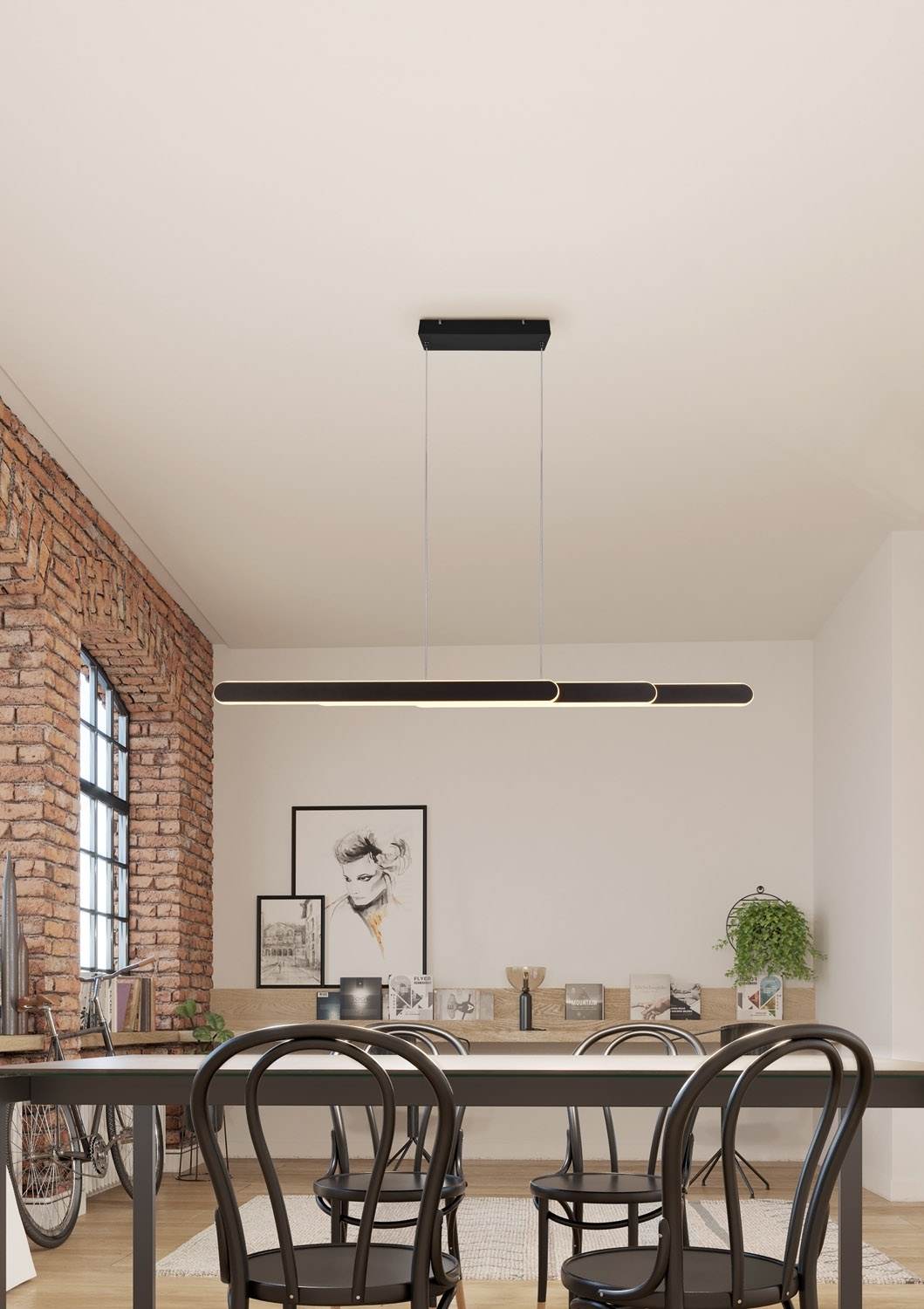 Mit einer Farbtemperatur von 2700 - 6500 Kelvin kann die Leuchte entweder ein warmweißes, neutralweißes oder tageslichtweißes Licht ausstrahlen. Bei Bedarf kann die Lichtstärke über einen Tastdimmer an der Oberseite des Pendels sanfter und wieder kräftiger eingestellt werden. Über einen geeigneten Wandschalter ist die LED-Pendelleuchte ebenfalls in 4 Stufen dimmbar.
