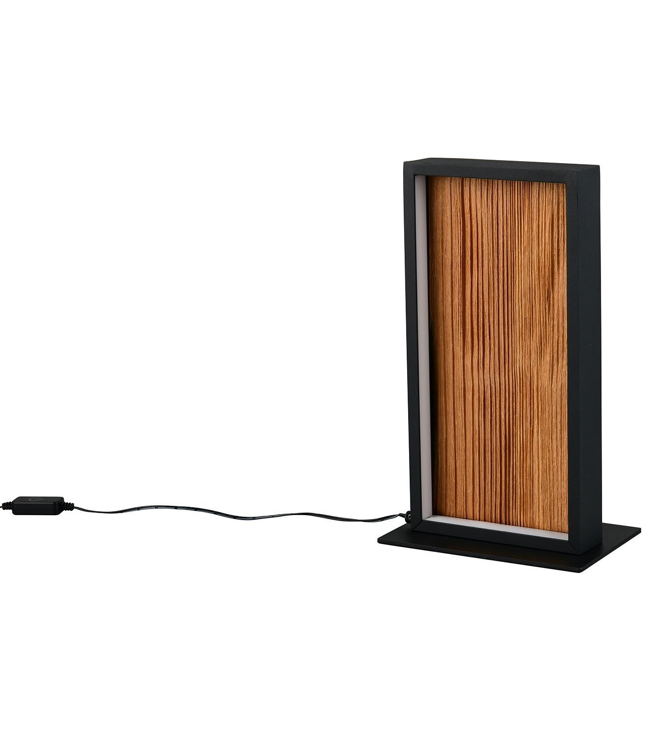Die LED-Tischlampe KALEA der Marke TRIO Leuchten besteht aus schwarzem Metall und ist mit einem Lampenschirm aus massivem Holz in Braun versehen. Mit einer Breite von 16 cm, einer Höhe von 30 cm und einer Tiefe von 12 cm eignet sich die Leuchte für unterschiedlichste Einsatzbereiche. Ausgestattet ist sie mit einem fest integrierten LED-Leuchtmittel, das eine Leistung von 14 Watt sowie eine Lichtstärke von 1750 Lumen aufweist. Die Farbtemperatur beträgt 3000 Kelvin und sorgt damit für warmweißes Licht. Die Helligkeit lässt sich über einen 3-stufigen Switch-Dimmer regulieren. Zusätzlich ist ein Schnurschalter vorhanden. Das Leuchtmittel ist im Lieferumfang enthalten und nicht austauschbar.