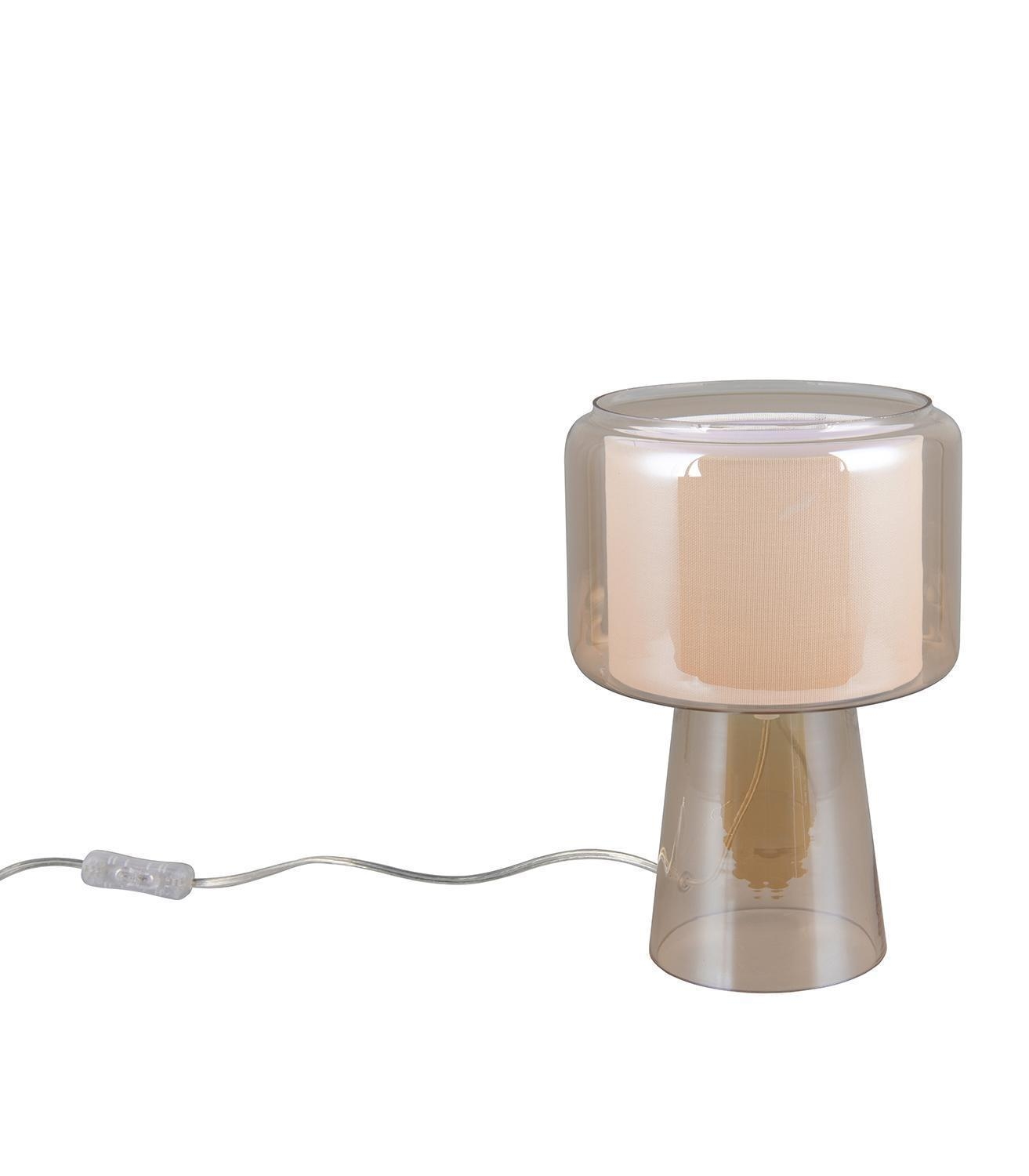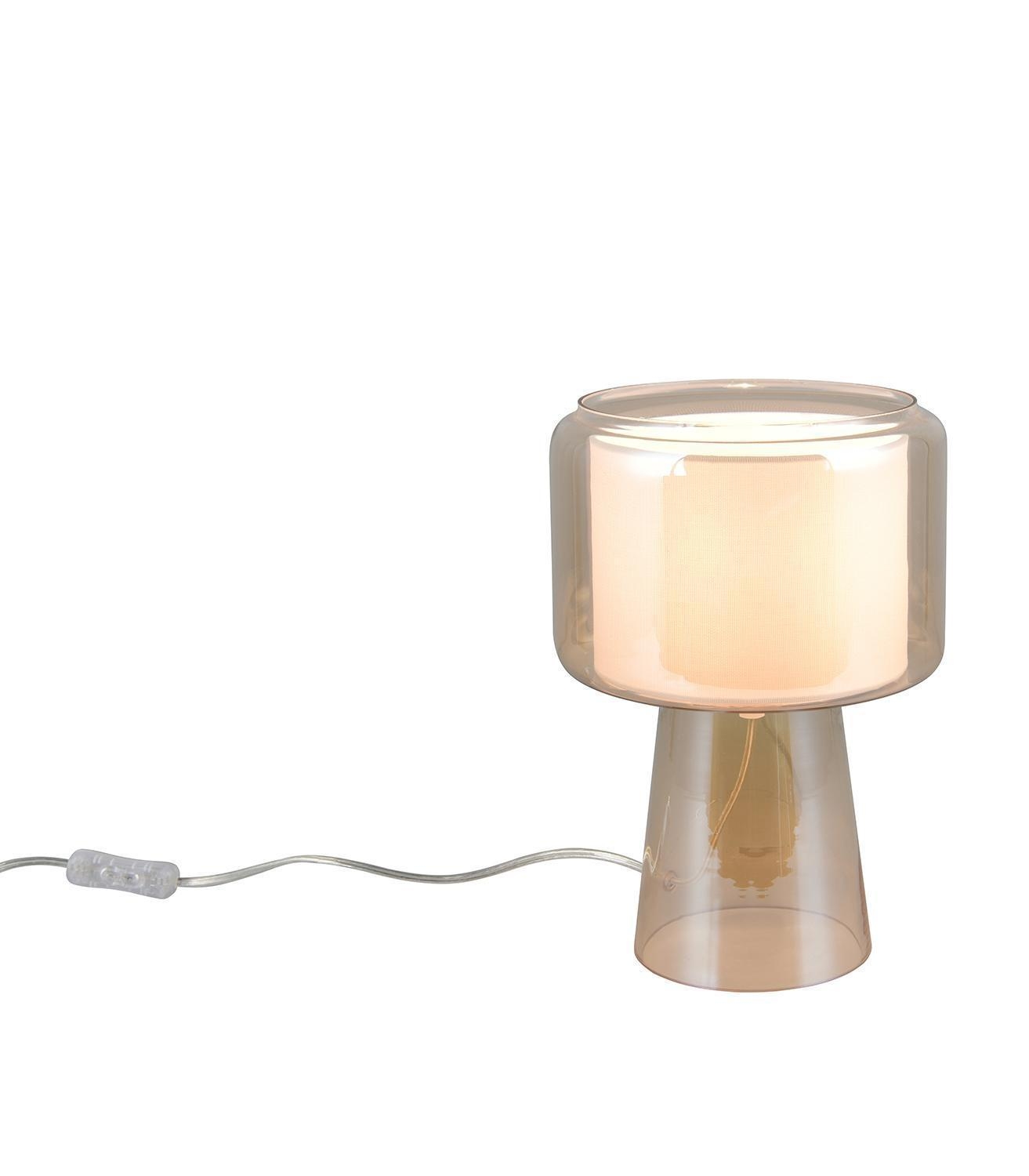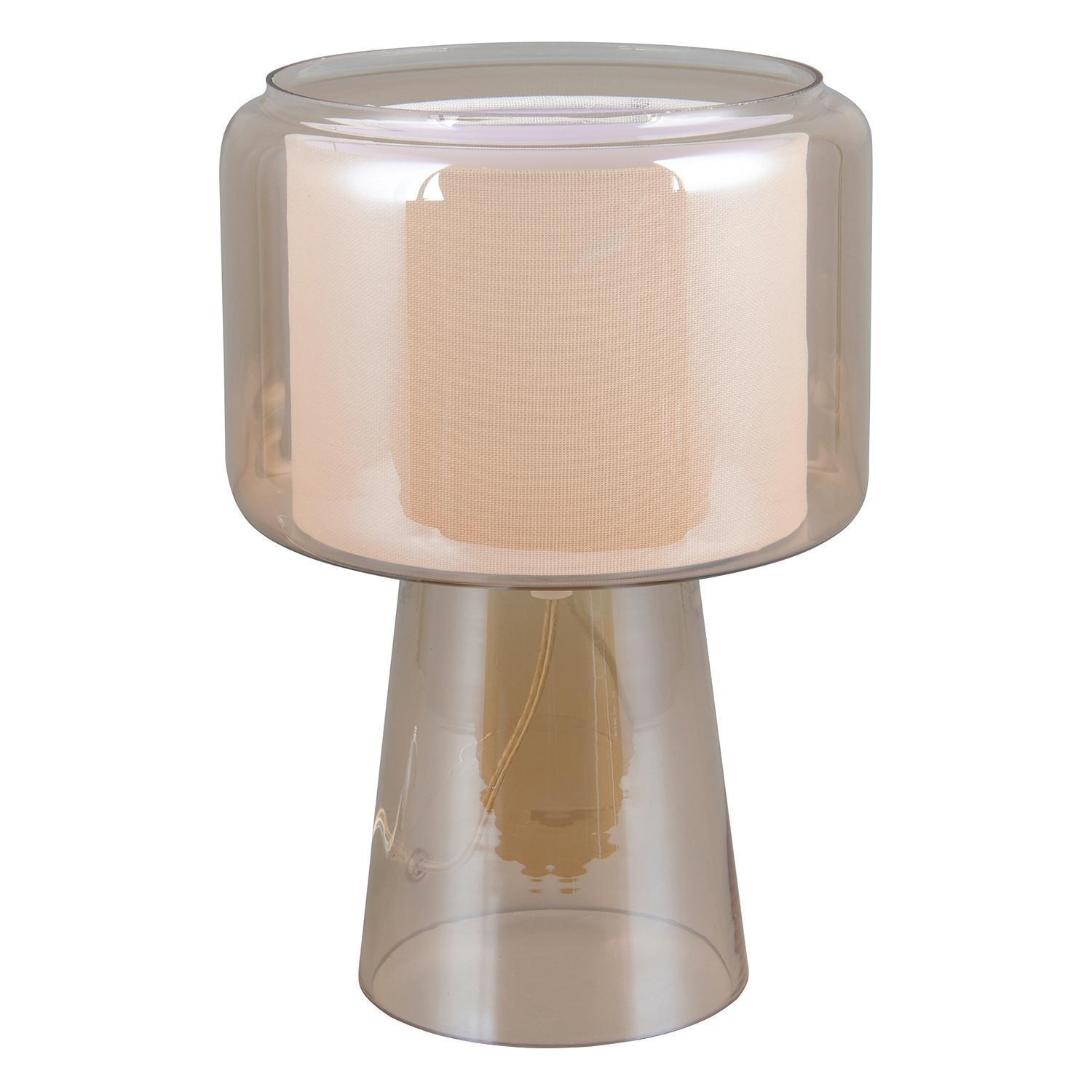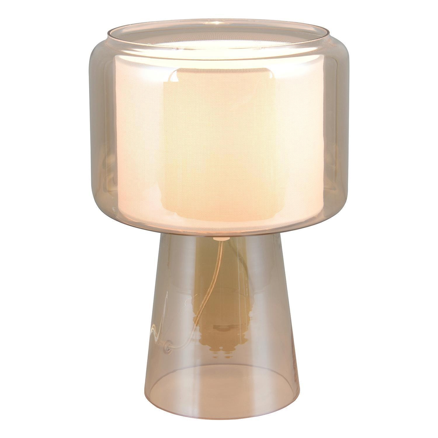 H 29 cm - Amberfarben - Weiß - Glas - Stoffschirm
