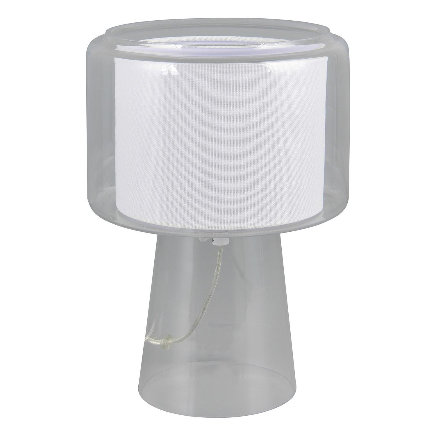 H 29 cm - Transparent - Weiß - Glas - Stoffschirm