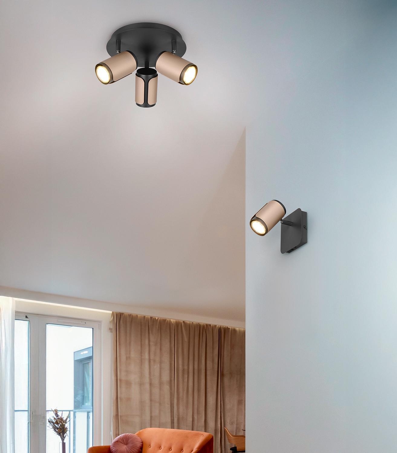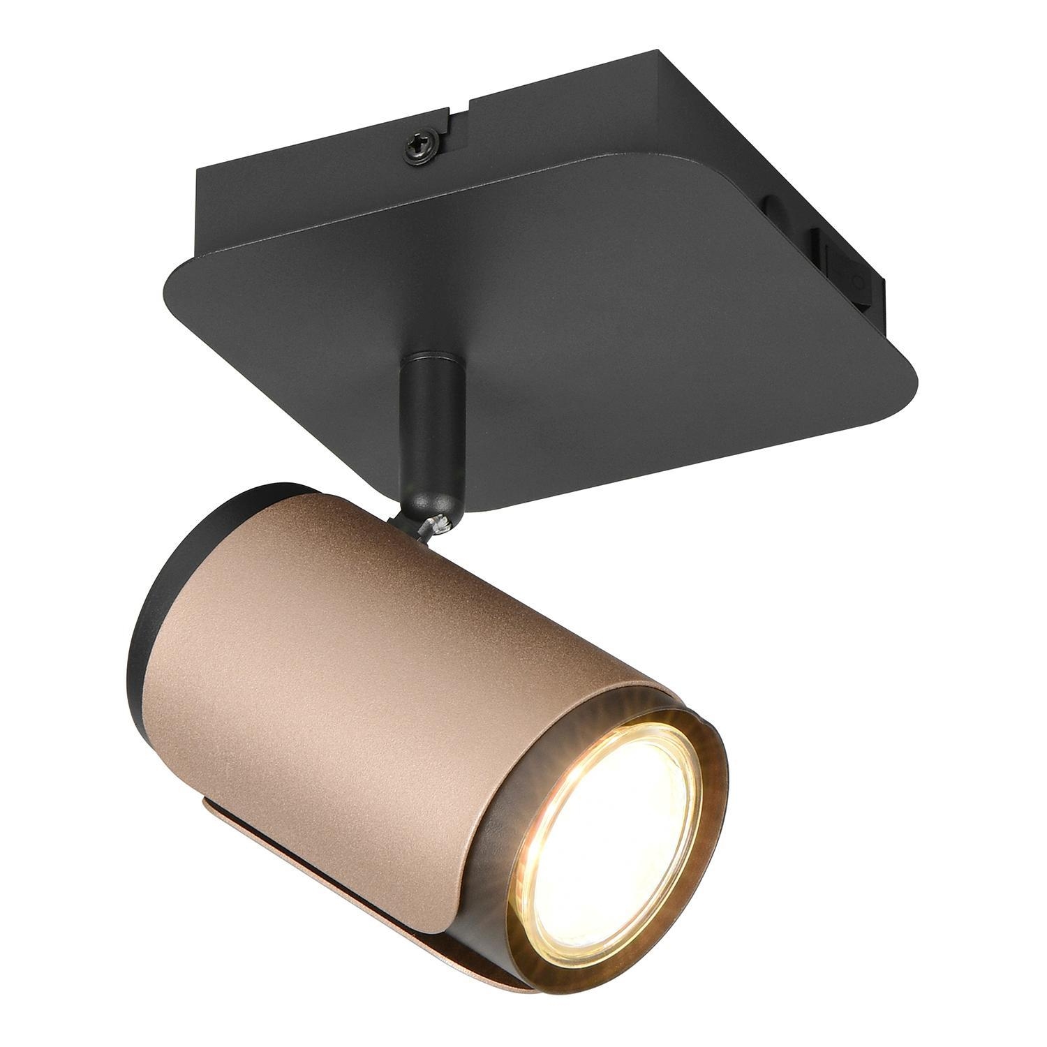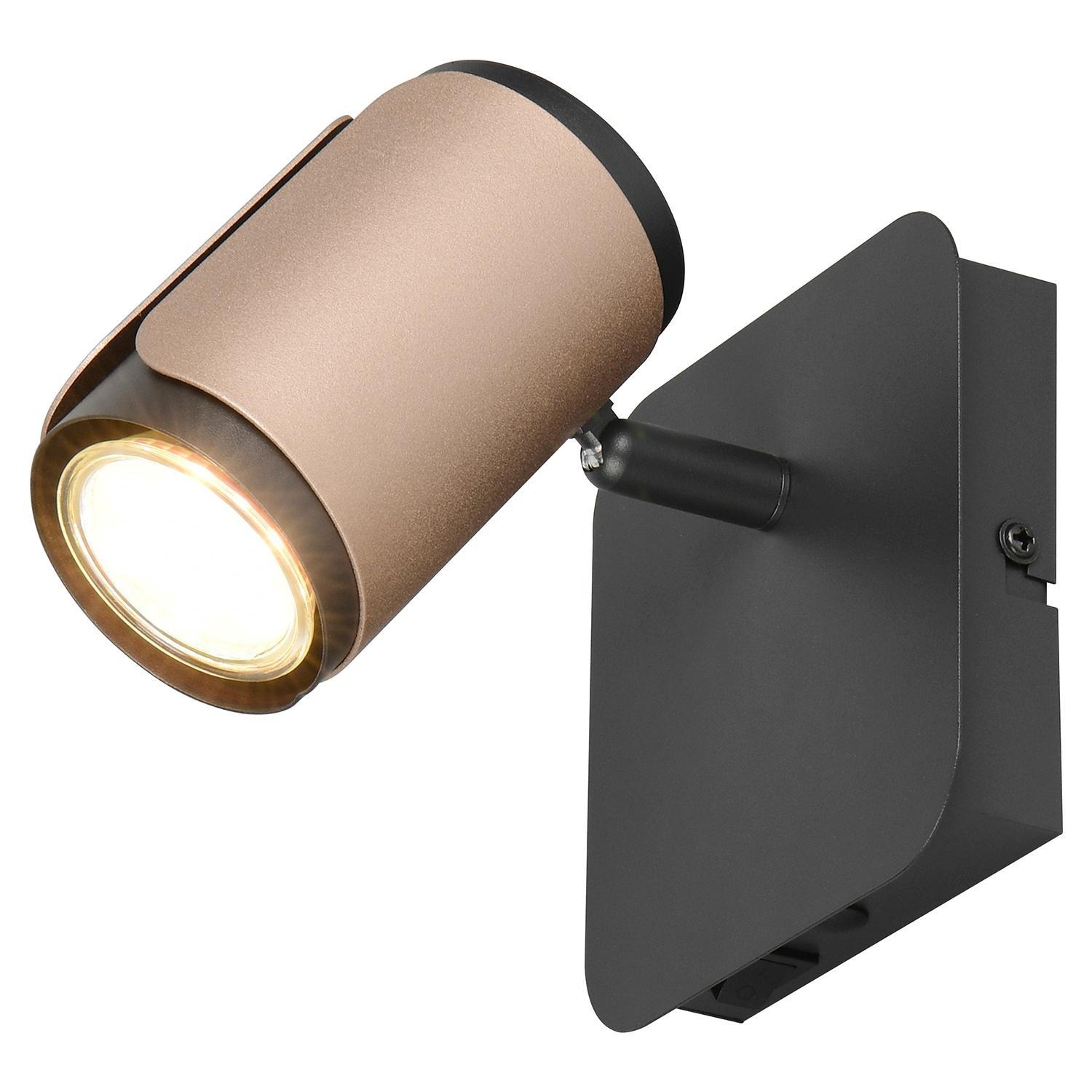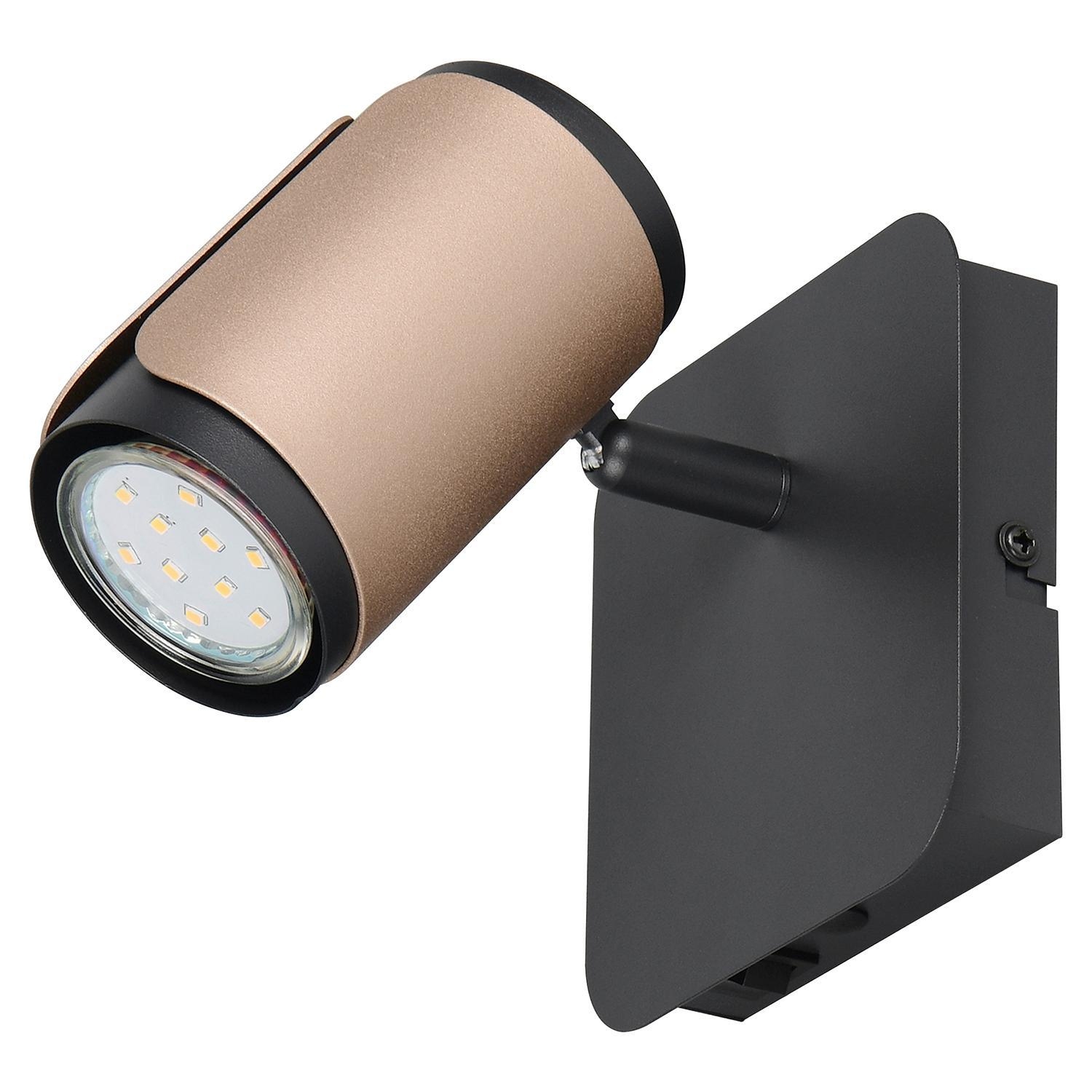 Die Wandleuchte GILLAN von der Marke TRIO Leuchten kombiniert schwarzes Metall für das Gehäuse mit einem Lampenschirm aus braunem Metall. Ein wesentliches Merkmal der Leuchte ist die Verstellbarkeit des Lampenschirms, die eine gezielte Ausrichtung des Lichts ermöglicht. Die Abmessungen der Wandleuchte betragen 12 cm in der Breite, 12 cm in der Höhe und 16 cm in der Tiefe. Für den Betrieb ist ein einzelnes, austauschbares Leuchtmittel erforderlich, das nicht im Lieferumfang enthalten ist. Dieses muss den Typ GU10 aufweisen und eine maximale Leistung von 10 Watt nicht überschreiten.