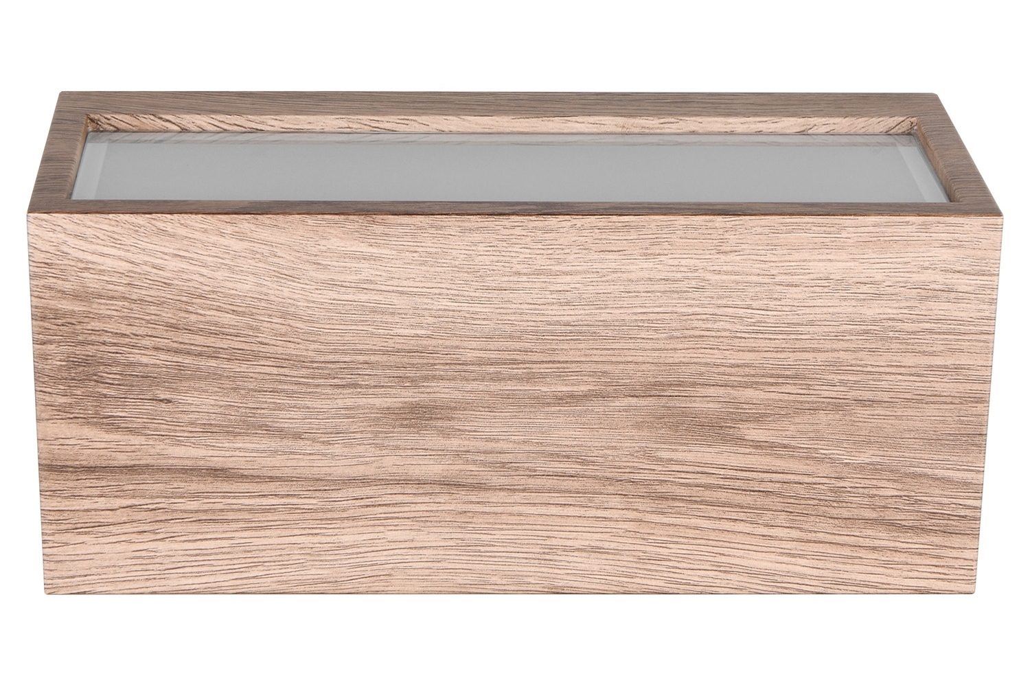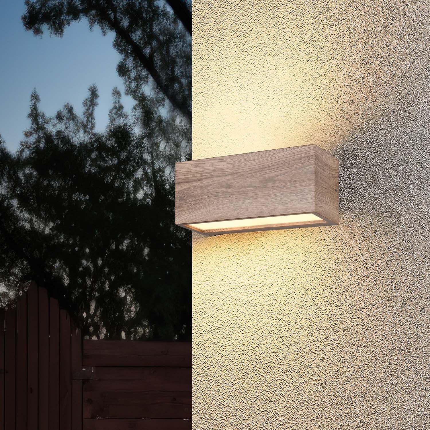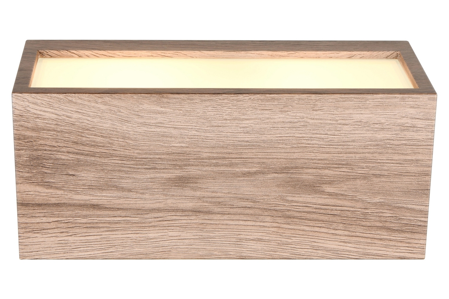 Die Wandleuchte MAYENNE von TRIO Leuchten vereint Aluminium in attraktiver Holzoptik und bietet eine ansprechende Up-Down-Beleuchtung. Mit ihrer IP44 Spritzwasserschutz-Zertifizierung eignet sie sich auch für den Einsatz in feuchten Umgebungen. Die Maße von 25 cm Breite, 11 cm Höhe und 10 cm Tiefe machen sie vielseitig einsetzbar. Sie benötigt 2 Leuchtmittel vom Typ E14, die jedoch nicht im Lieferumfang enthalten sind, aber austauschbar. Jedes Leuchtmittel kann eine maximale Leistung von 10 Watt erreichen.