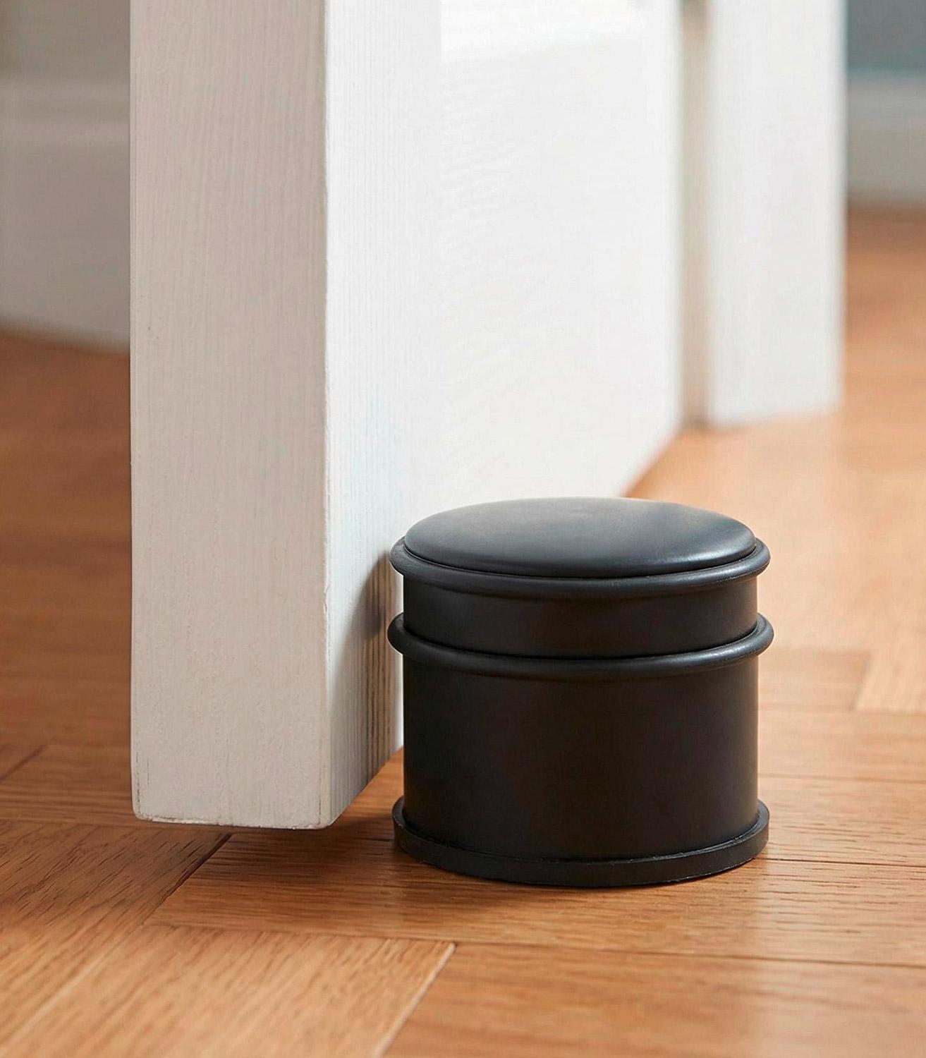 Der Türstopper WIGAND in Schwarz ist aus stabilem Edelstahl gefertigt und bietet durch seine rutschfeste Unterseite einen sicheren Stand. Die integrierten Gummiringe sorgen für ein sanftes Abdämpfen der Tür, wodurch Beschädigungen vermieden werden. Mit einem Durchmesser von 9 cm und einer Höhe von 7,5 cm ist er kompakt und effektiv im Einsatz, ideal für den täglichen Gebrauch.