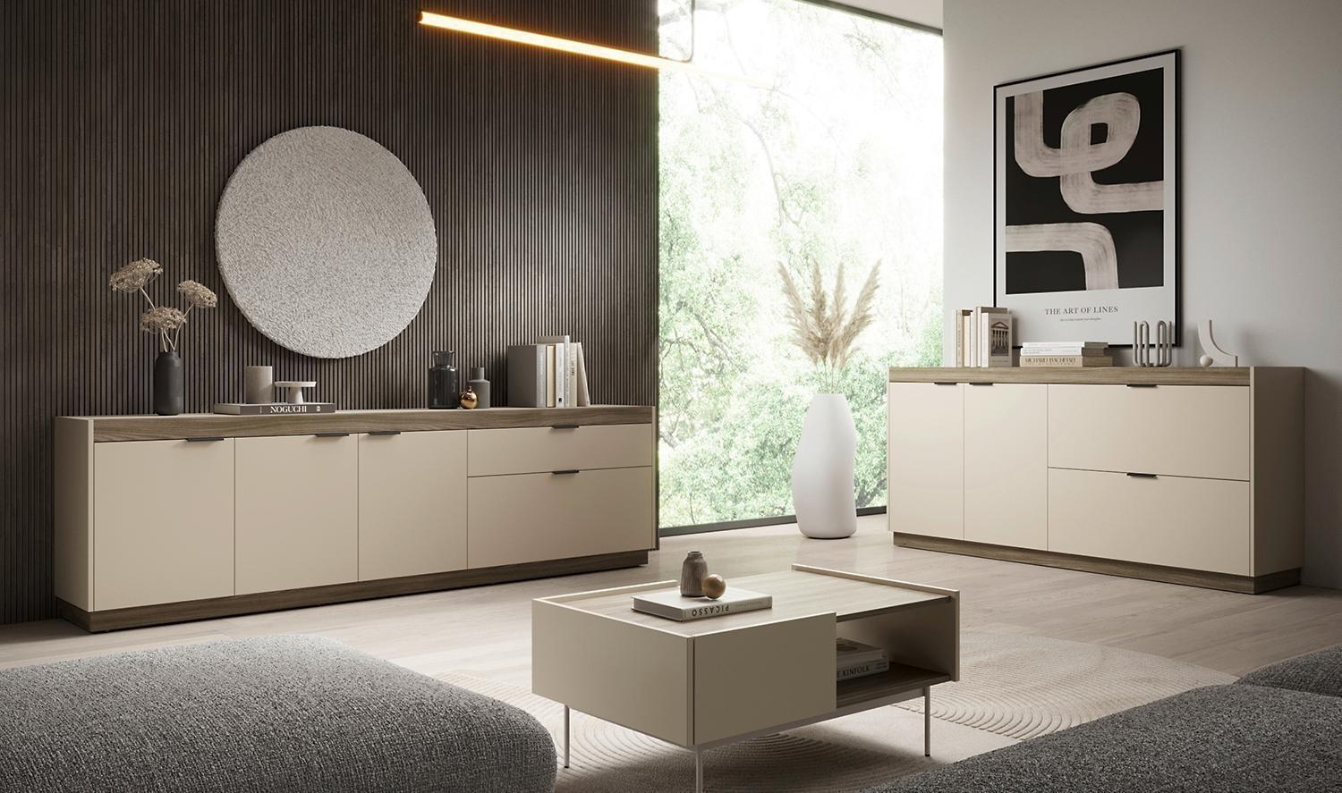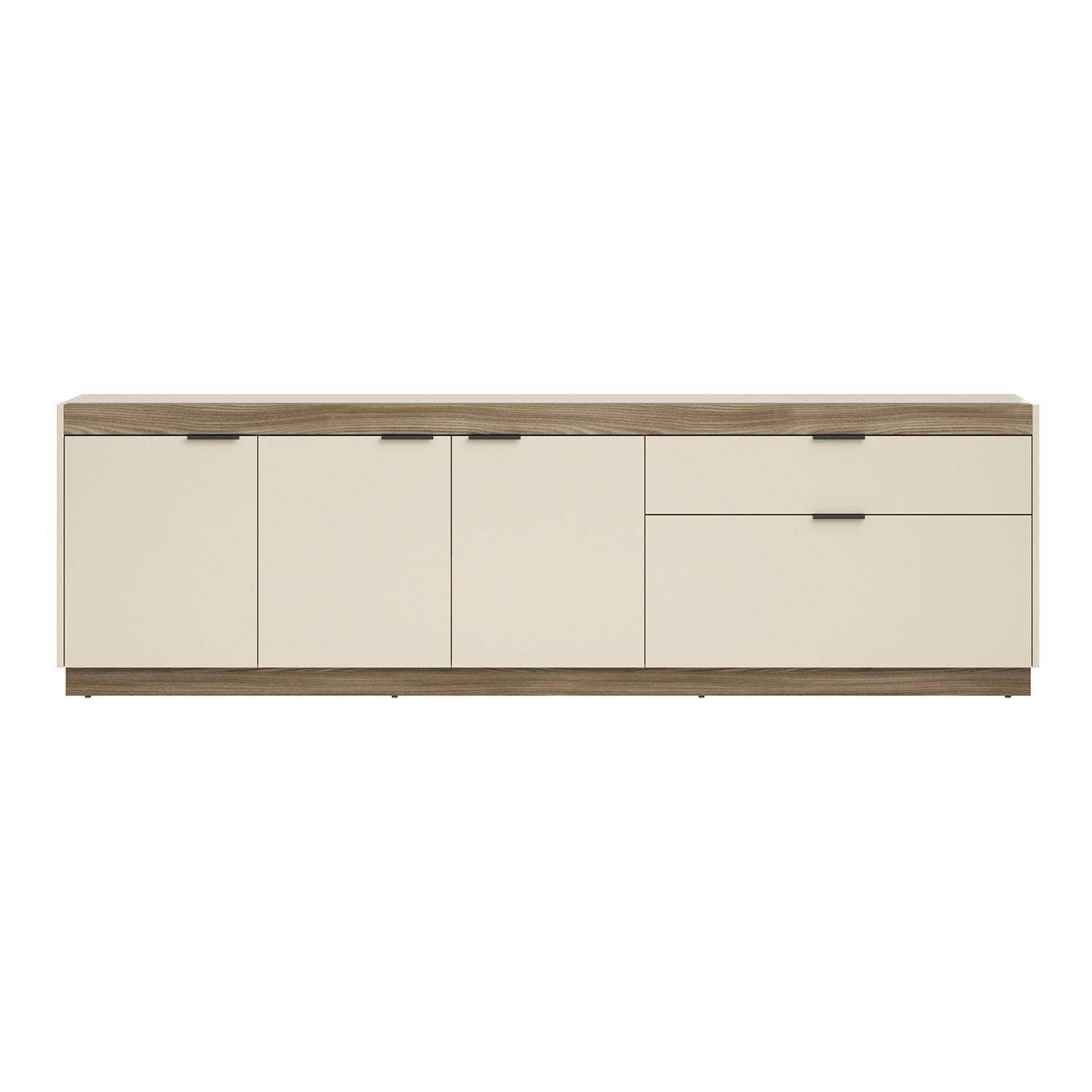 228 x 69 cm - 2 Türen - 1 Klappe - 1 Schublade - Praline Elm Dekor - Sandgrau