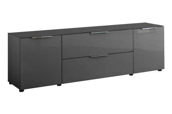180 x 54 cm - 2 Türen - 1 Schublade - 1 Klappe - Anthrazitglas - Anthrazit matt