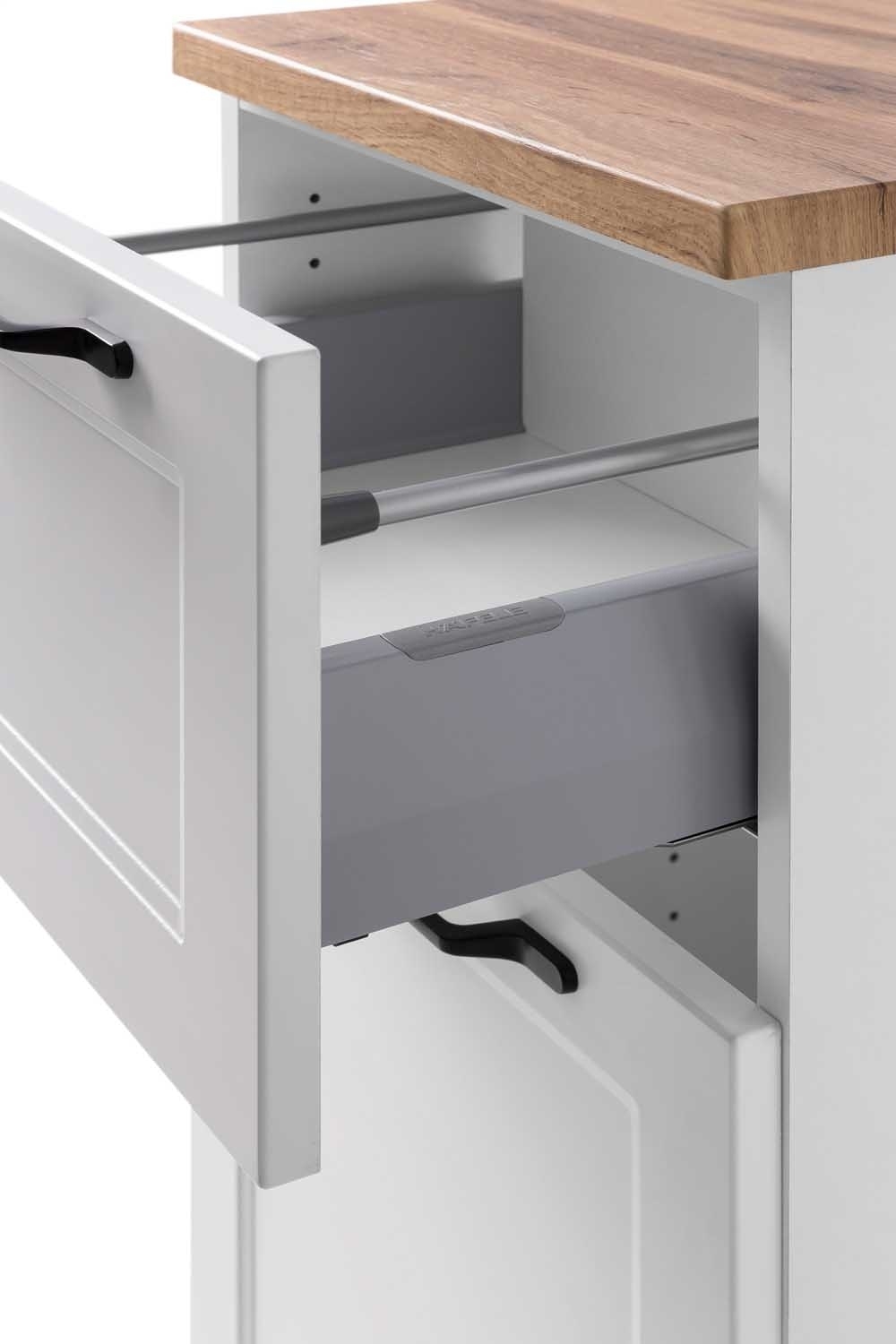 Soft-Close-Funktion: Die Soft-Close-Funktion schließt die Schublade ab einem gewissen Punkt sanft von alleine. Ein lautes oder unkontrolliertes Zufallen wird vermieden.