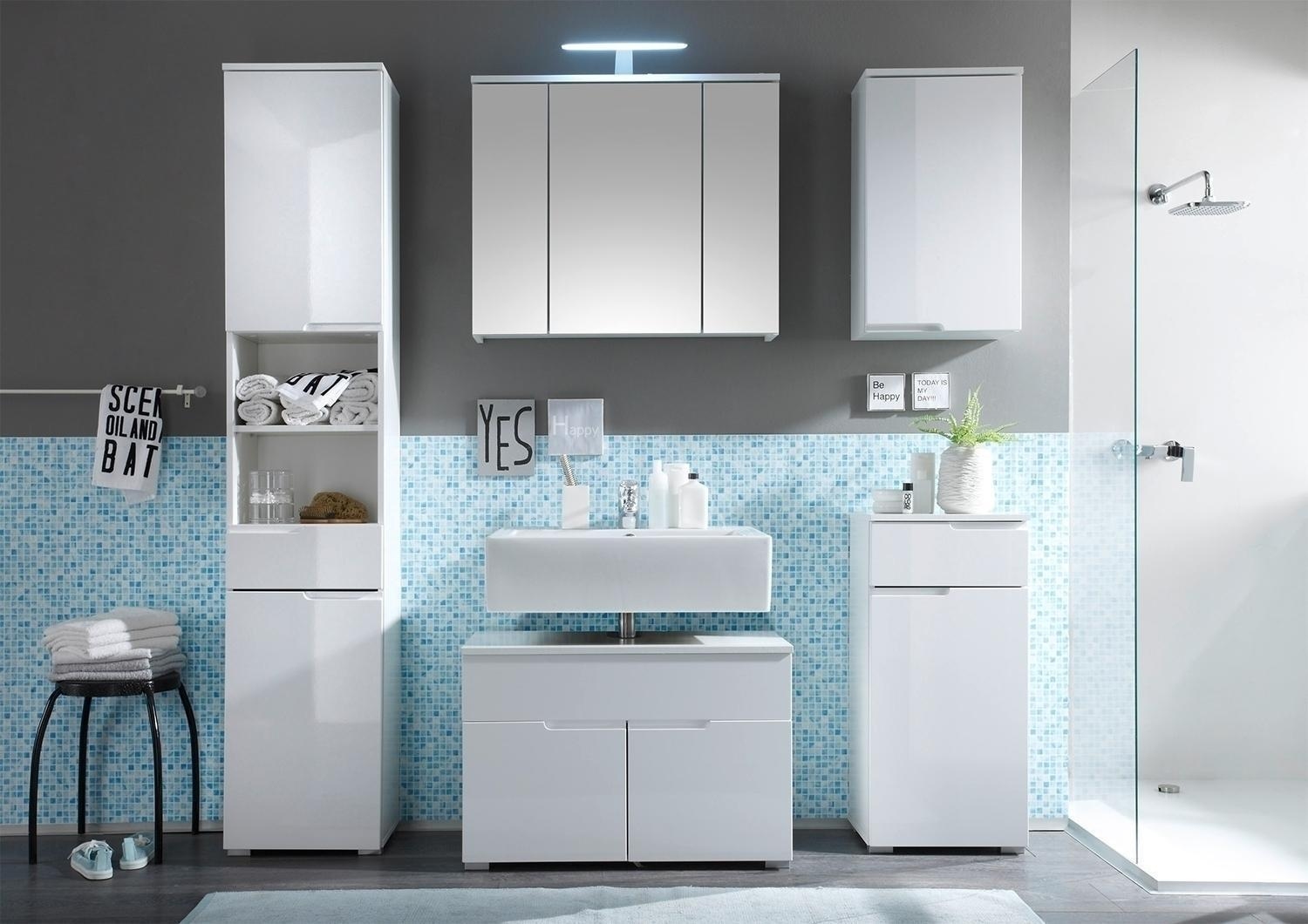 Weiß Hochglanz - B 40 cm - 1 Tür - 1 Schublade