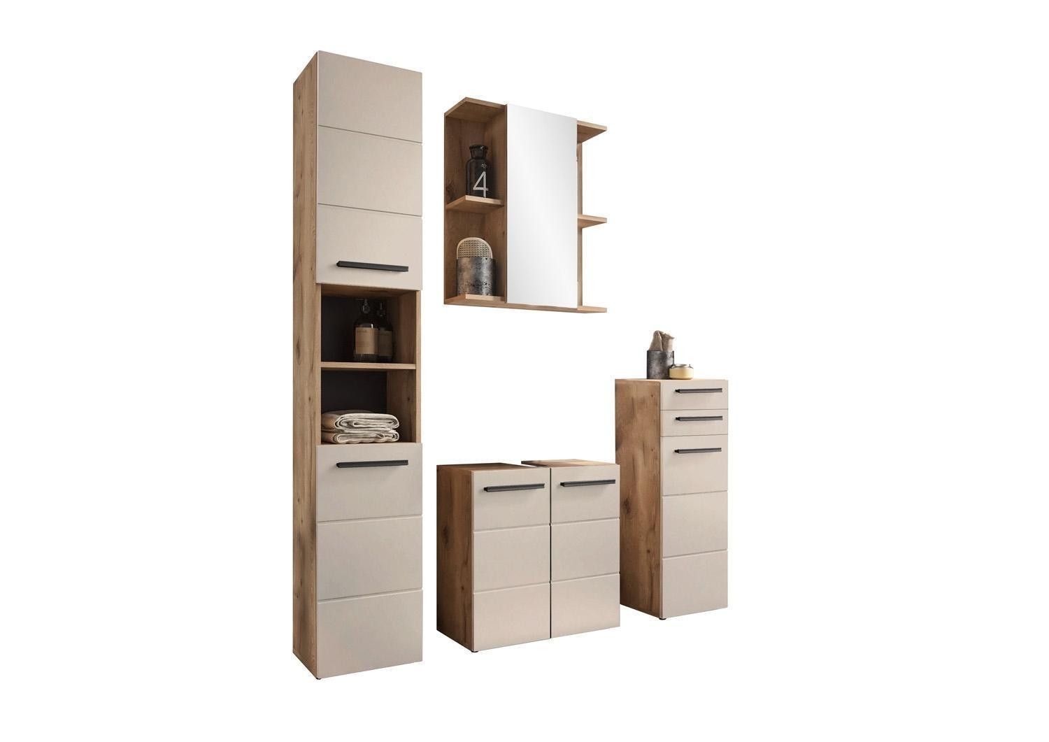 B 34 cm - 1 Tür - 2 Schubladen - Sandfarben - Viking Eiche Dekor