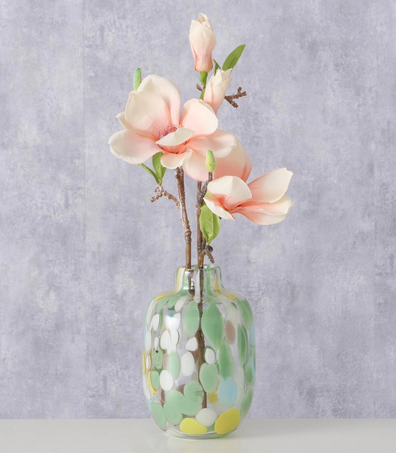 Diese Vase GREENA von Boltze bringt Farbe und Leichtigkeit in jedes Zuhause. Mit ihrem geflammten Glas in Grün, Weiß und Gelb ist sie ein stilvoller Blickfang für frische Blumen, Trockenpflanzen oder Pampasgras. Die Vase ist 17 cm hoch und hat einen Durchmesser von 13 cm – ideal für Sideboard, Tisch oder Fensterbank. Hergestellt aus gefärbtem Glas ist sie wasserdicht und vielseitig einsetzbar. Ein dekoratives Accessoire, das modernes Design mit natürlicher Ausstrahlung verbindet.