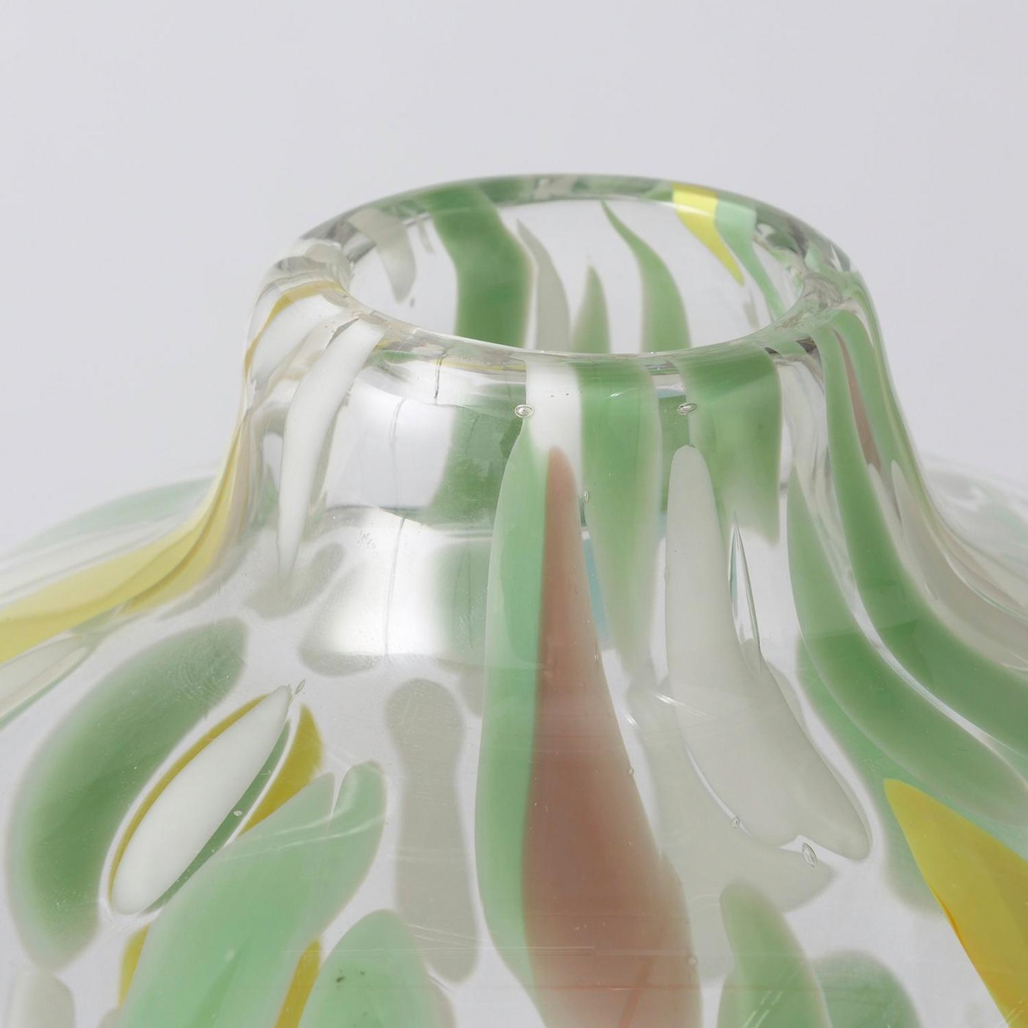 H 17 cm - Grün - Weiß - Gelb - gefärbtes Glas