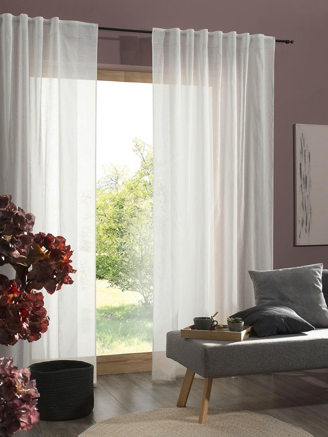 140 x 245 cm - Weiß - Längsstreifen - halbtransparent