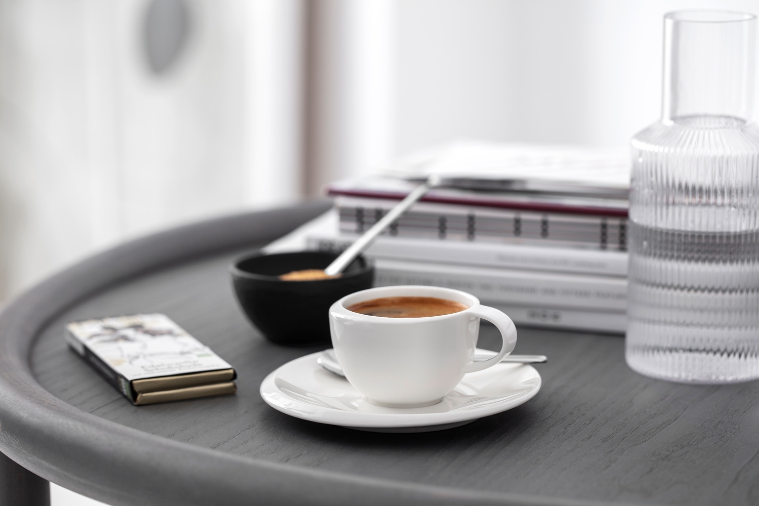 Die Espressotasse in Weiß, 100 ml Füllmenge, bietet mit ihrer unifarbenen Gestaltung zeitlose Eleganz. Mit einer Breite von 8,9 cm, Tiefe von 7,1 cm und Höhe von 4,8 cm ist sie aus hochwertigem Porzellan gefertigt. Die Tasse ist Made in Germany, mikrowellengeeignet und spülmaschinenfest, was sie zu einem praktischen und stilvollen Begleiter für den täglichen Genuss macht.