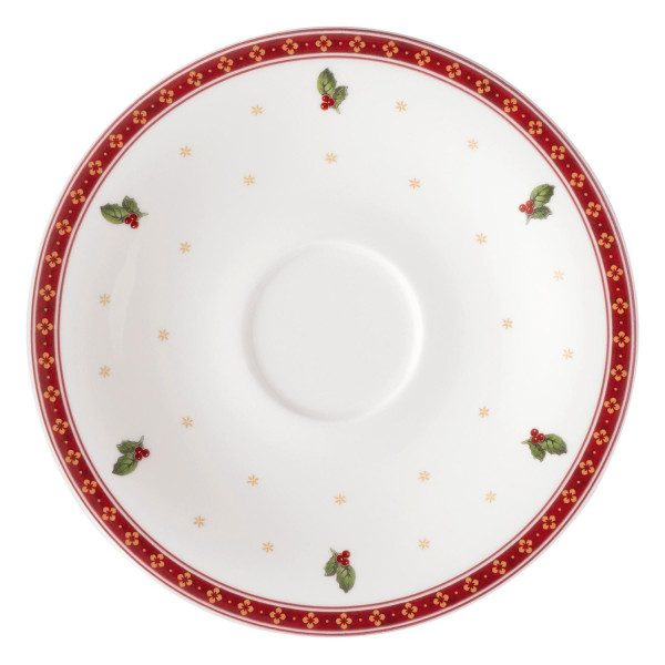 Die Kaffeeuntertasse TOY'S DELIGHT SPECIALS von Villeroy & Boch besteht aus Porzellan in festlichen Farben wie Weiß, Rot und Grün. Mit einem Durchmesser von 16,7 cm bietet sie die perfekte Ergänzung zu einer stilvollen Kaffeetafel. Liebevoll gestaltete Weihnachtsmotive verleihen ihr einen charmanten, saisonalen Look. Die Untertasse ist mikrowellengeeignet und spülmaschinenfest – ideal für den täglichen Gebrauch und festliche Anlässe in der Weihnachtszeit.