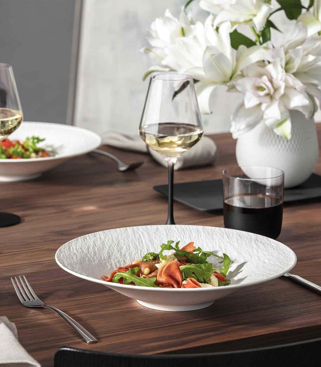 Ein exquisiter Pastateller MANUFACTURE ROCK BLACK von Villeroy & Boch in elegantem Weiß, hergestellt aus hochwertigem Porzellan. Mit einem Durchmesser von 28 cm und einer Höhe von 5 cm präsentiert er zeitlose Eleganz. Dieses in Deutschland gefertigte Geschirr ist sowohl mikrowellensicher als auch spülmaschinenfest, was Funktionalität und Stil perfekt vereint.