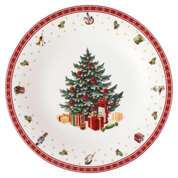 Der Platzteller TOY'S DELIGHT SPECIALS von Villeroy & Boch aus Porzellan in Weiß, Rot und Grün bringt festliche Eleganz auf den Tisch. Mit einem Durchmesser von 30 cm bietet er die ideale Basis für ein weihnachtlich gedecktes Menü. Die liebevoll gestalteten Weihnachtsmotive sorgen für eine festliche Atmosphäre und machen den Teller zu einem besonderen Blickfang. Er ist mikrowellengeeignet und spülmaschinenfest – perfekt für stilvolle und zugleich praktische Tischdekoration in der Adventszeit.