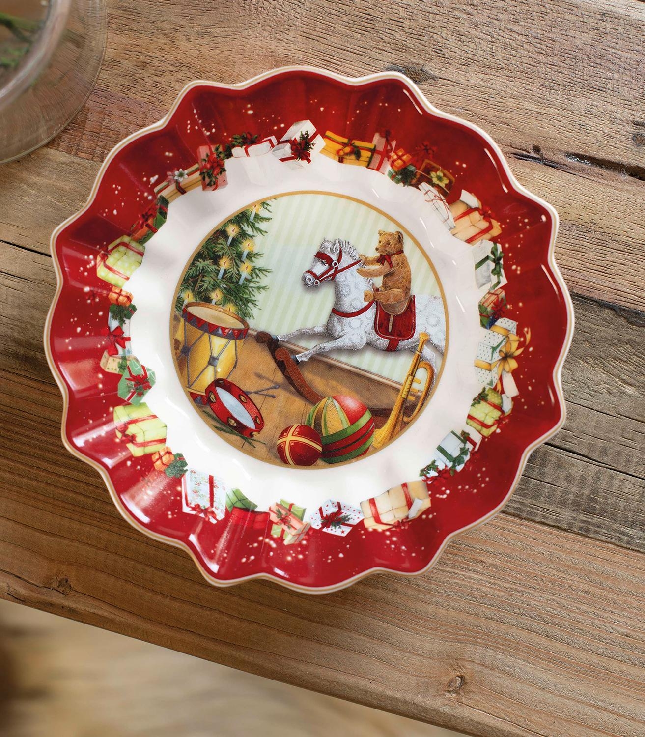 Die Schale TOYS FANTASY der Marke Villeroy & Boch besteht aus Porzellan in den Farben Rot und Weiß. Sie zeigt ein Motiv mit Geschenken. Mit einem Durchmesser von 17 cm und einer Höhe von 3,5 cm bietet die Schale ausreichend Platz zum Servieren von Speisen oder Kleinigkeiten. Die Schale ist mikrowellengeeignet und für die Reinigung wird Handwäsche empfohlen.