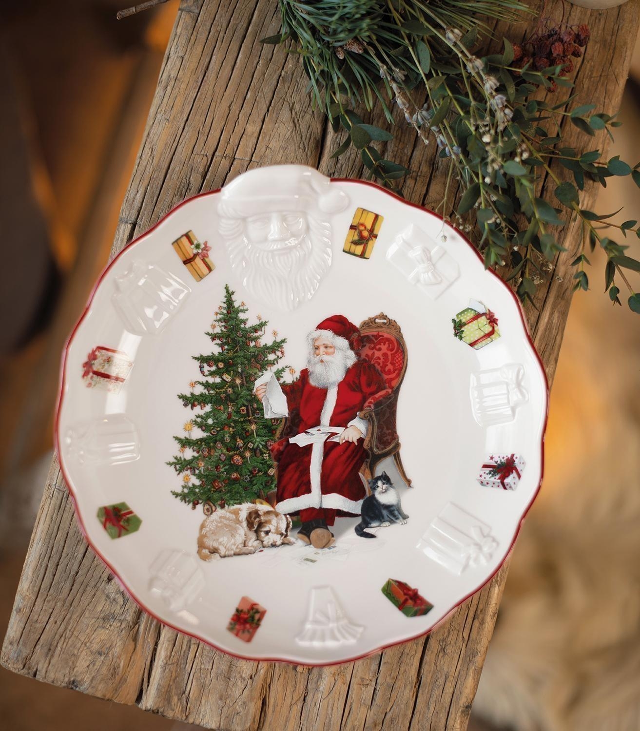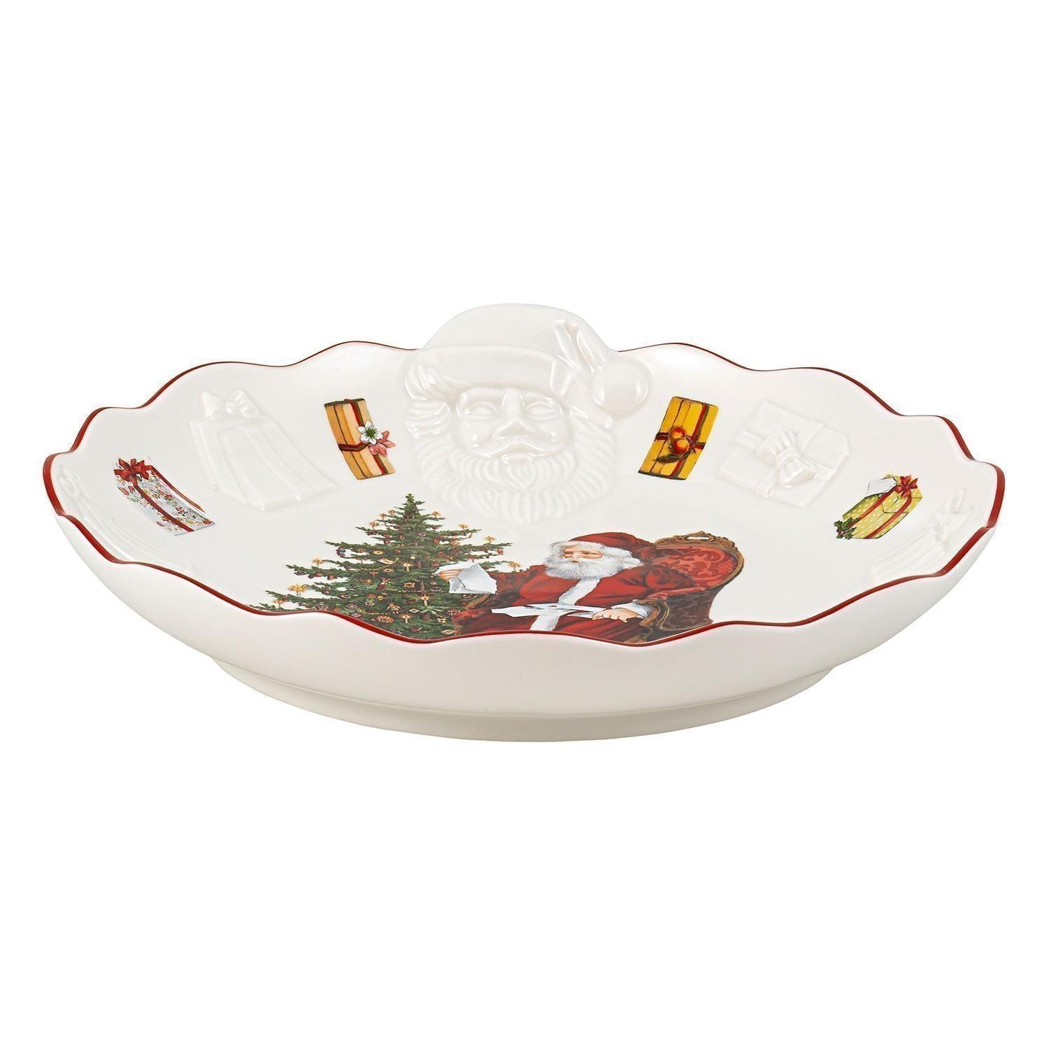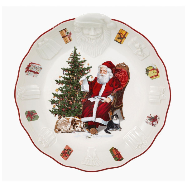 Die Schale TOYS FANTASY der Marke Villeroy & Boch ist aus Porzellan gefertigt und in den Farben Rot und Weiß gehalten. Sie zeigt ein Motiv mit Weihnachtsmann und ist mit einem Relief versehen, das die Gestaltung plastisch hervorhebt. Die Schale hat einen Durchmesser von 25 cm und eine Höhe von 4,9 cm. Für die Reinigung wird Handwäsche empfohlen.