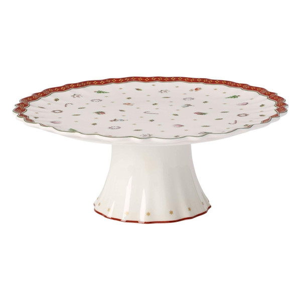 Der Tortenständer TOY’S DELIGHT der Marke Villeroy & Boch besteht aus Porzellan in den Farben Rot und Weiß. Er ist mit weihnachtlichen Motiven verziert und verfügt über einen Standfuß für einen sicheren Halt. Für die Reinigung wird Handwäsche empfohlen. Der Tortenständer hat einen Durchmesser von 28 cm und eine Höhe von 10,9 cm.