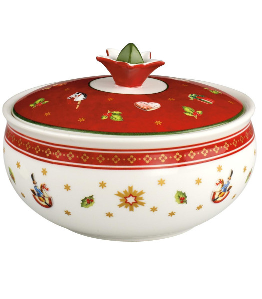 Die Zuckerdose TOY’S DELIGHT der Marke Villeroy & Boch besteht aus Porzellan in den Farben Rot, Grün und Weiß. Sie ist mit weihnachtlichen Motiven verziert und eignet sich als festliches Geschirr für die Weihnachtszeit. Für die Reinigung wird Handwäsche empfohlen. Die Zuckerdose hat einen Durchmesser von 13,5 cm, eine Höhe von 9,5 cm und ein Fassungsvermögen von 420 ml.