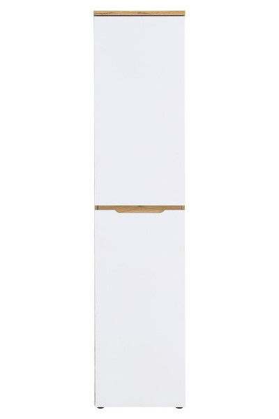 Der Büroschrank CLYDE der Marke vito besteht aus Mauvella Eiche Dekor und verfügt über Fronten in Weiß supermatt. Er ist mit zwei Türen ausgestattet, die eine Soft-Close-Funktion haben. Im Inneren befinden sich ein fester sowie drei höhenverstellbare Einlegeböden. Die Maße betragen 45 cm in der Breite, 197 cm in der Höhe und 38 cm in der Tiefe.
