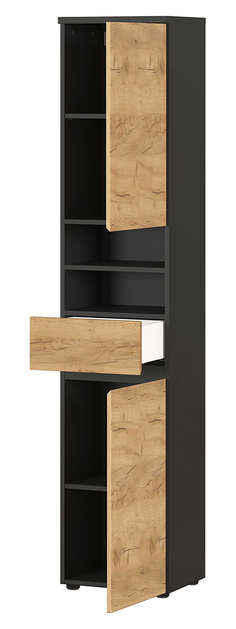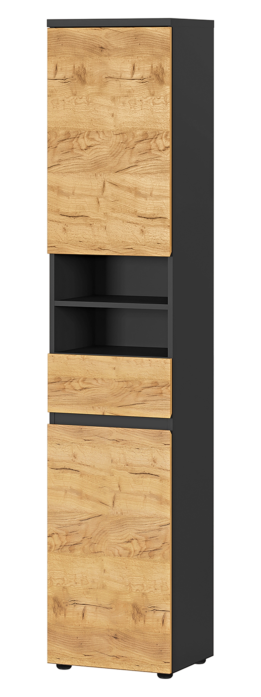 | Lieferumfang: | 1 Hochschrank mit 2 Türen, 1 Schublade und 2 Einlegeböden |