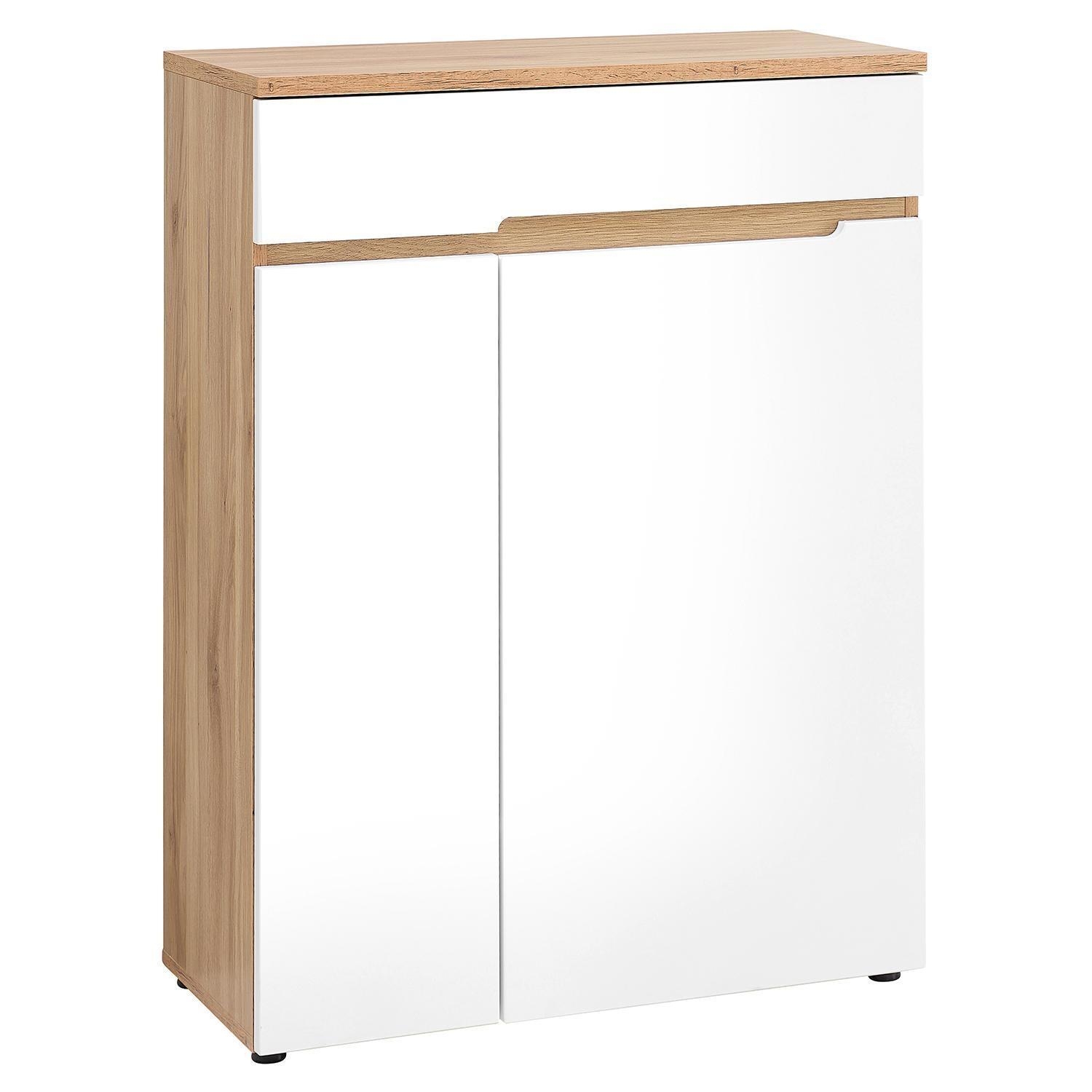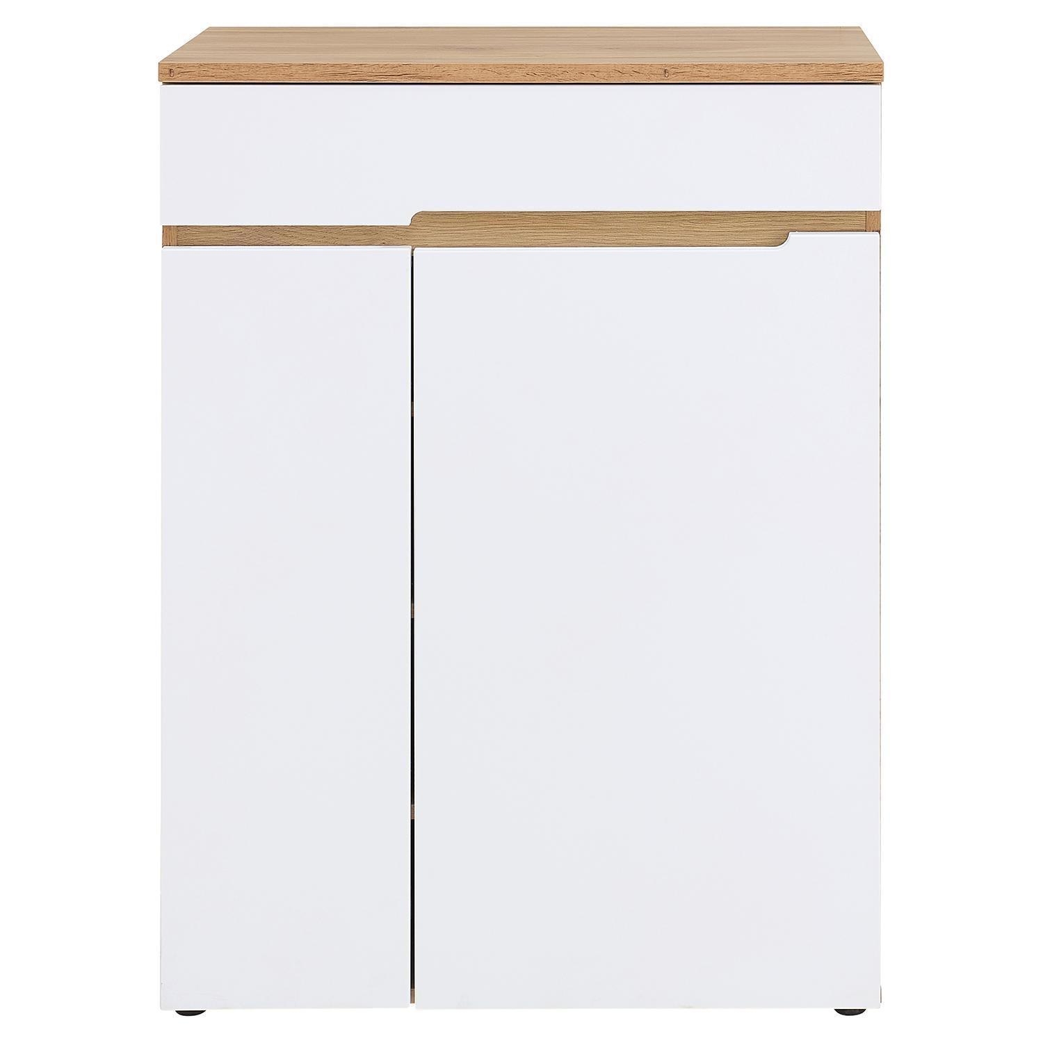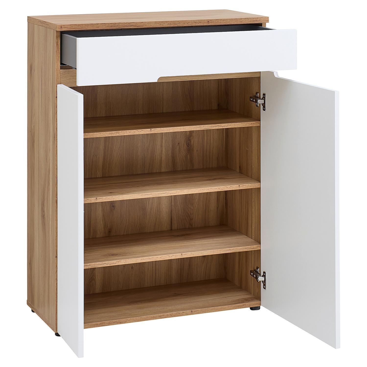 | Lieferumfang: | 1 Kommode mit 2 Türen, 1 Schublade und 3 dreifach höhenverstellbaren Einlegeböden |
