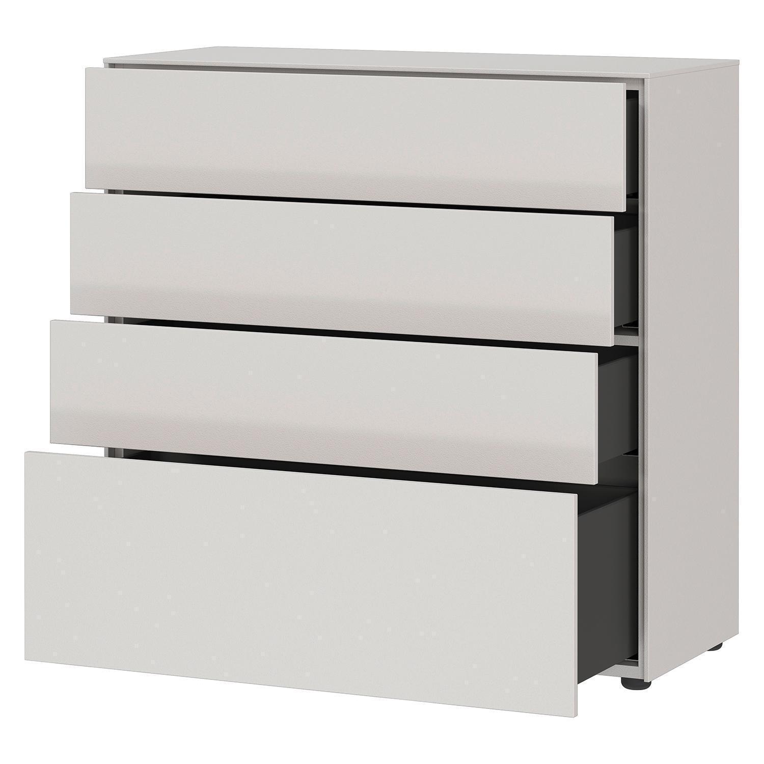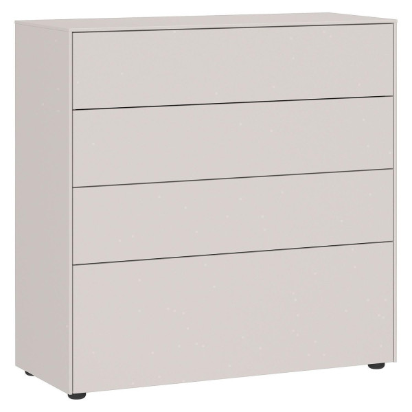 Die Kommode LOMENA von der Marke vito ist in Cashmeregrau gehalten. Das Möbelstück ist mit vier Schubladen ausgestattet, die über eine Push-to-Open-Funktion bedienbar sind. Charakteristisch für die in Deutschland hergestellte Kommode sind die stoß- und schlagfesten Kanten sowie die kratzfeste Oberfläche. Die Maße des Möbels umfassen eine Breite von 92 cm, eine Höhe von 93 cm und eine Tiefe von 41 cm.