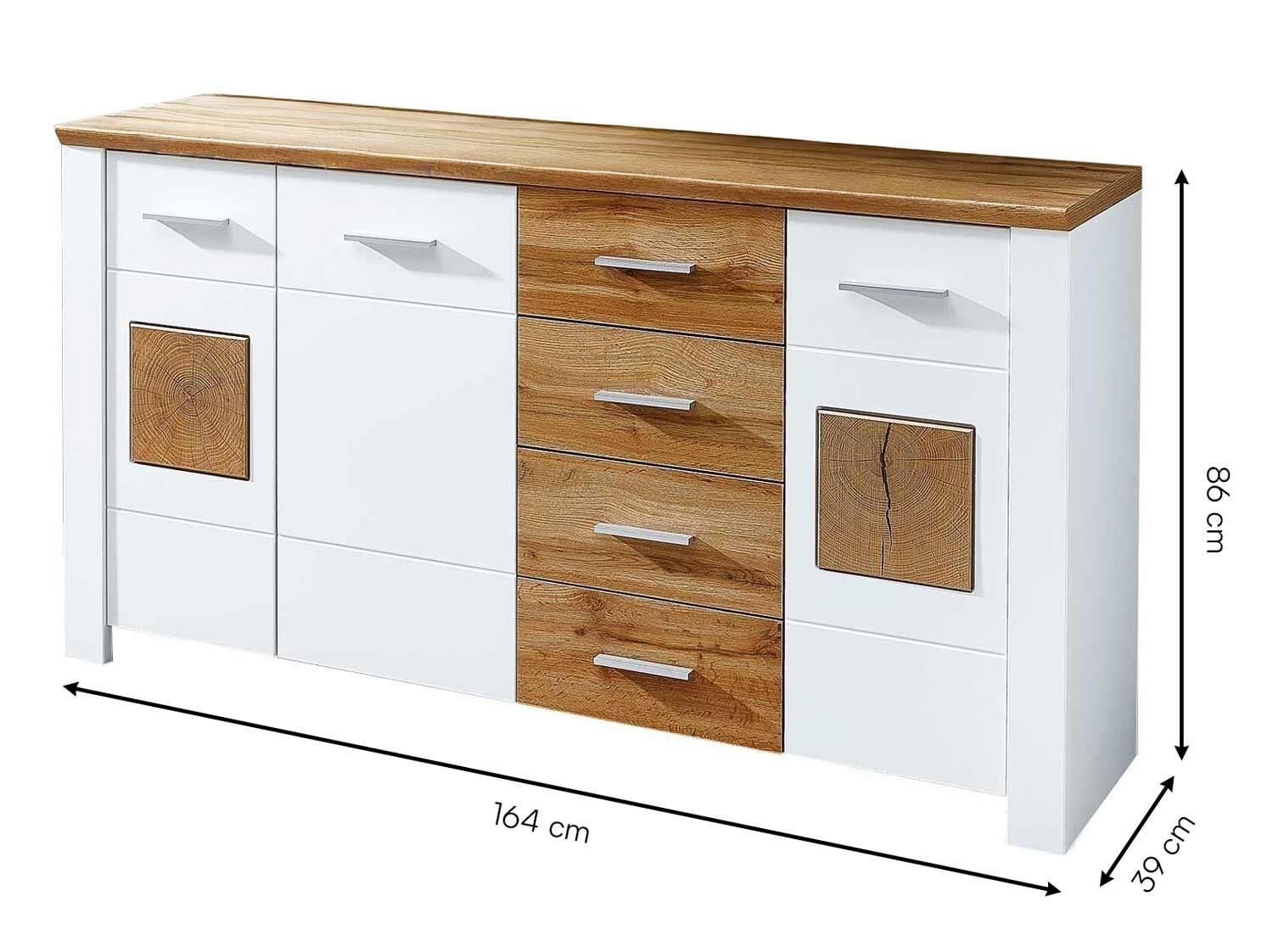 | Lieferumfang: | 1 Sideboard mit 3 Türen, 2 Einlegeböden und 4 Schubladen |