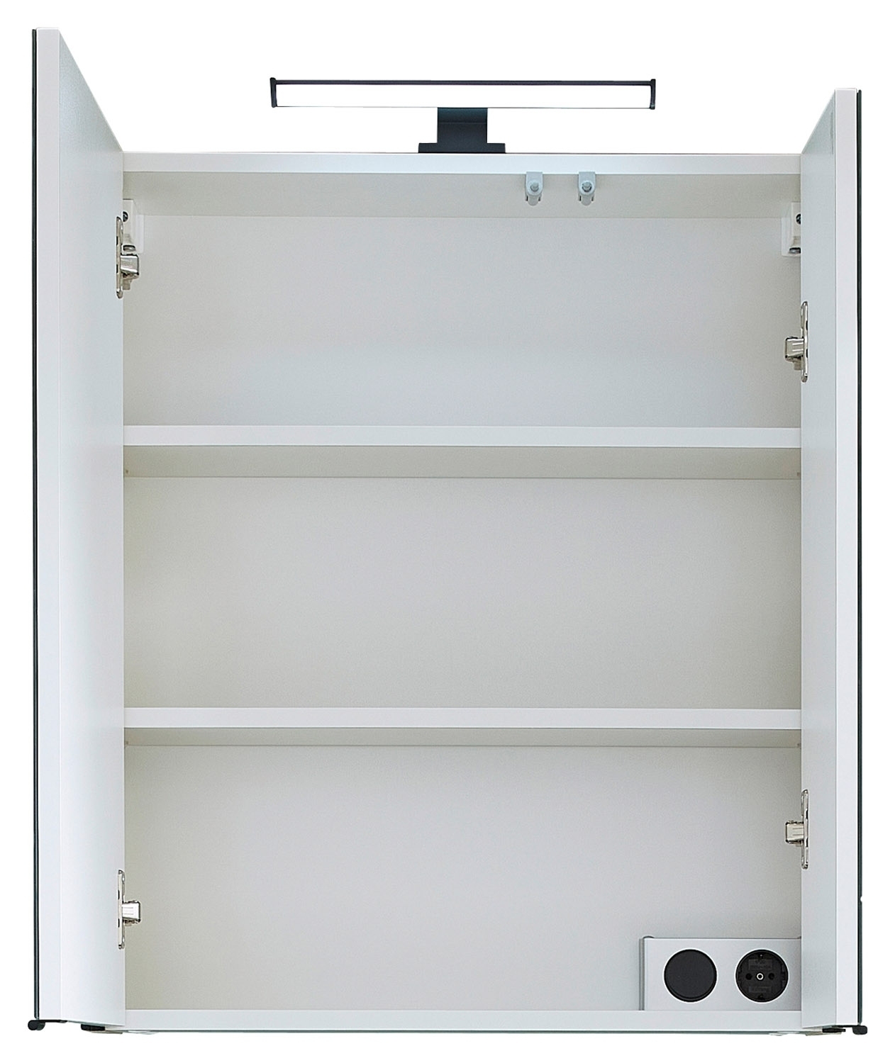| Lieferumfang: | 1 Spiegelschrank mit LED-Aufsatzleuchte, 2 Türen und 2 Einlegeböden |