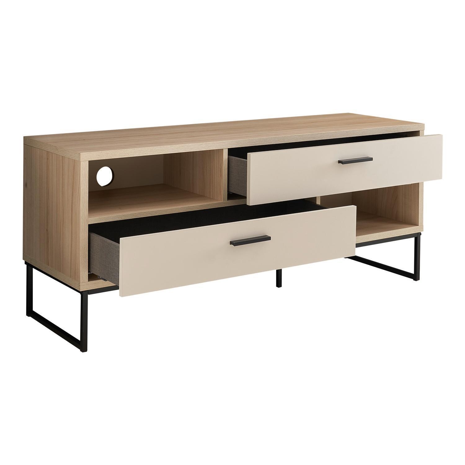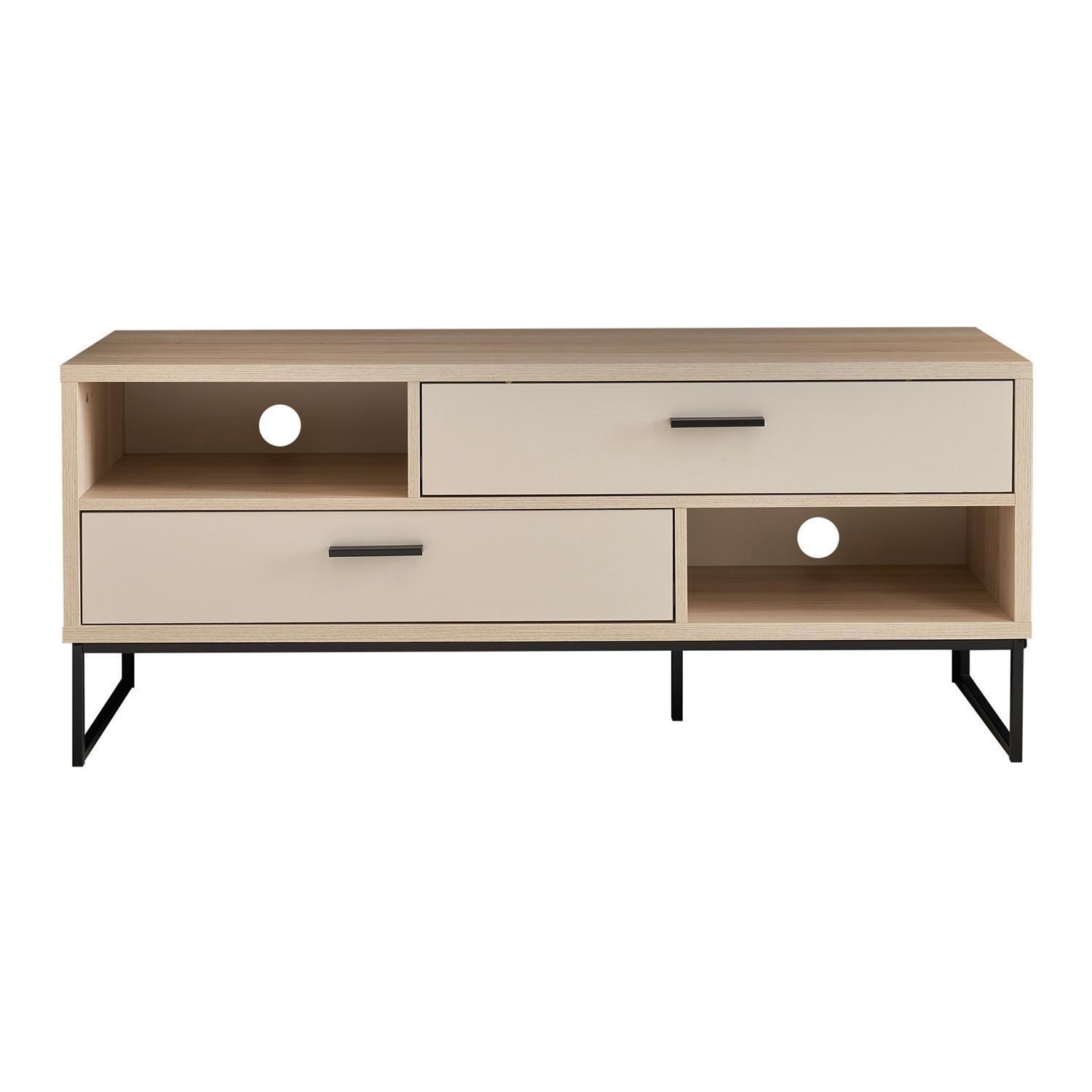 | Lieferumfang: | 1 TV Lowboard mit 2 Schubladen und 2 Ablagefächern mit je 1 Kabeldurchlass |