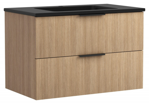 B 80 cm - 2 Schubladen - Tiara Eiche Dekor - inkl. Mineralgussbecken