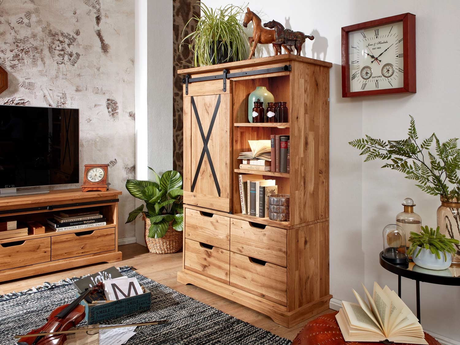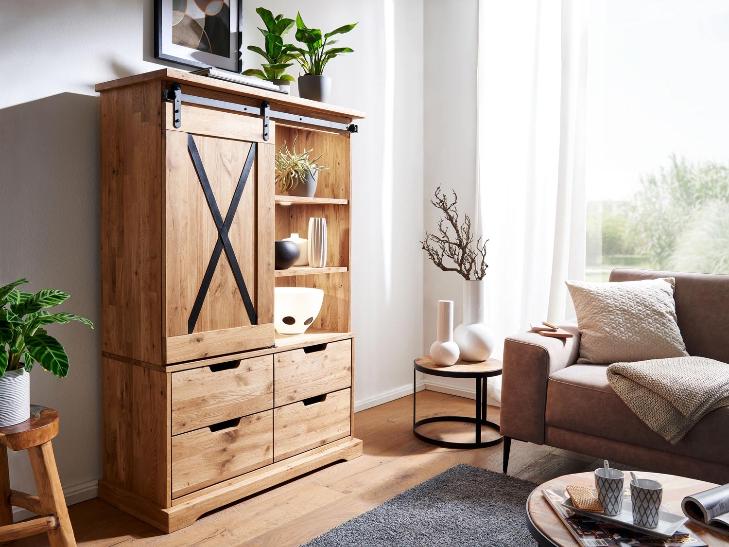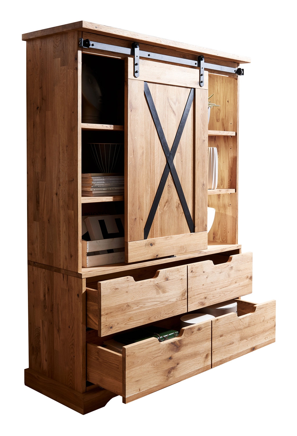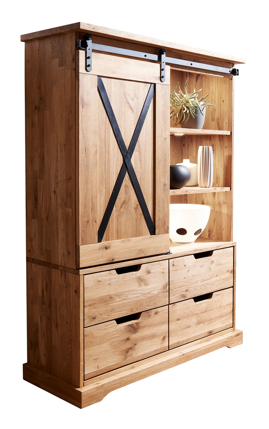 Wildeiche massiv geölt - B 102 cm - 1 Rolltür - 4 Schubladen