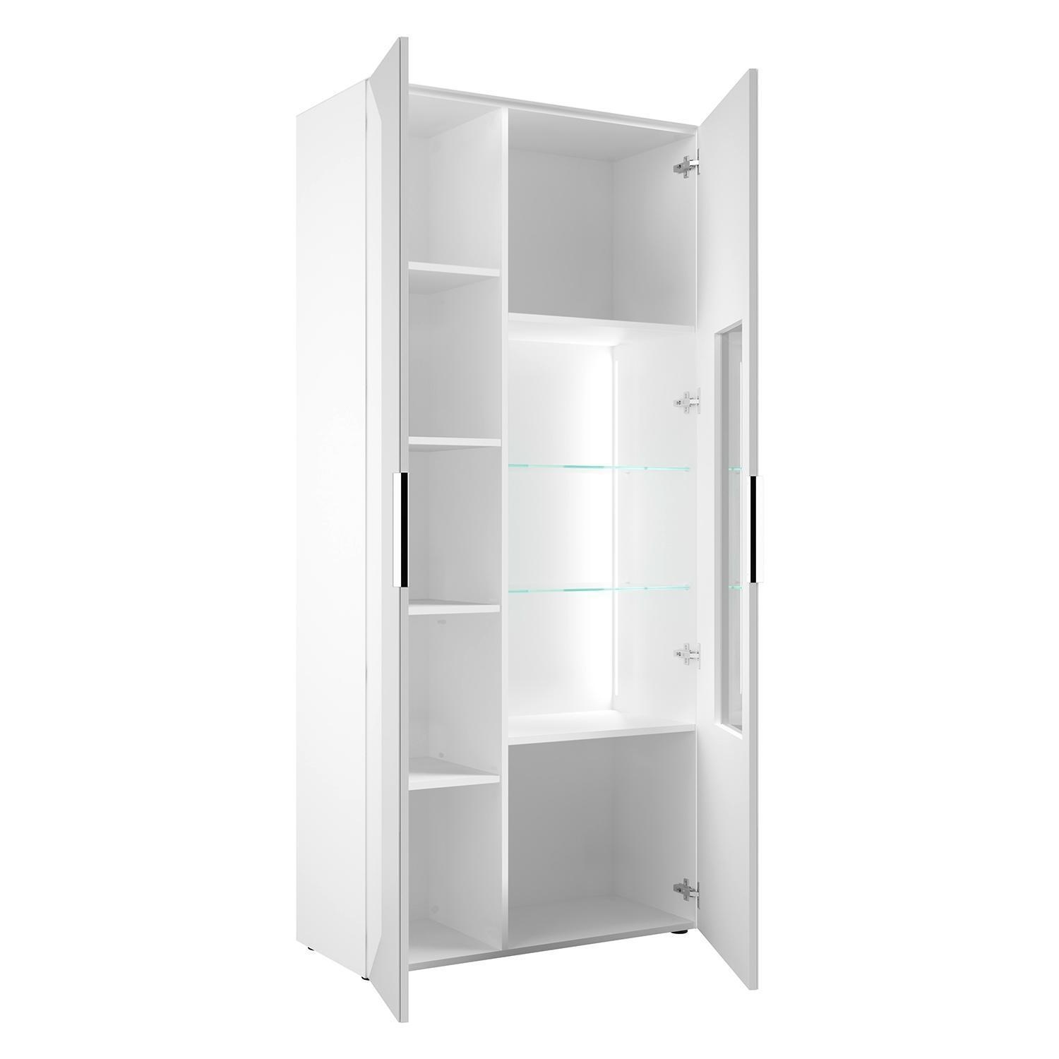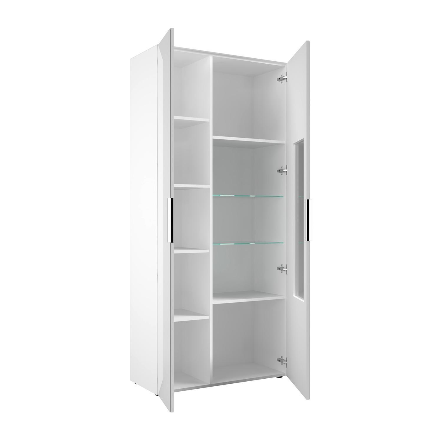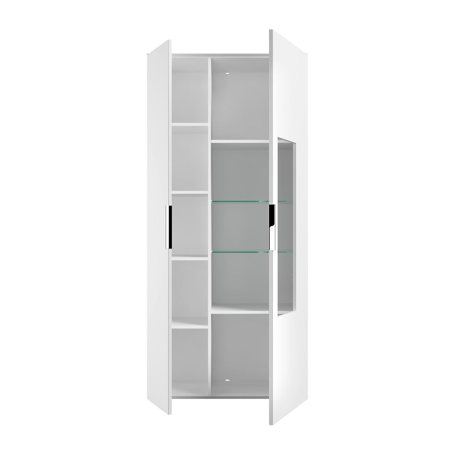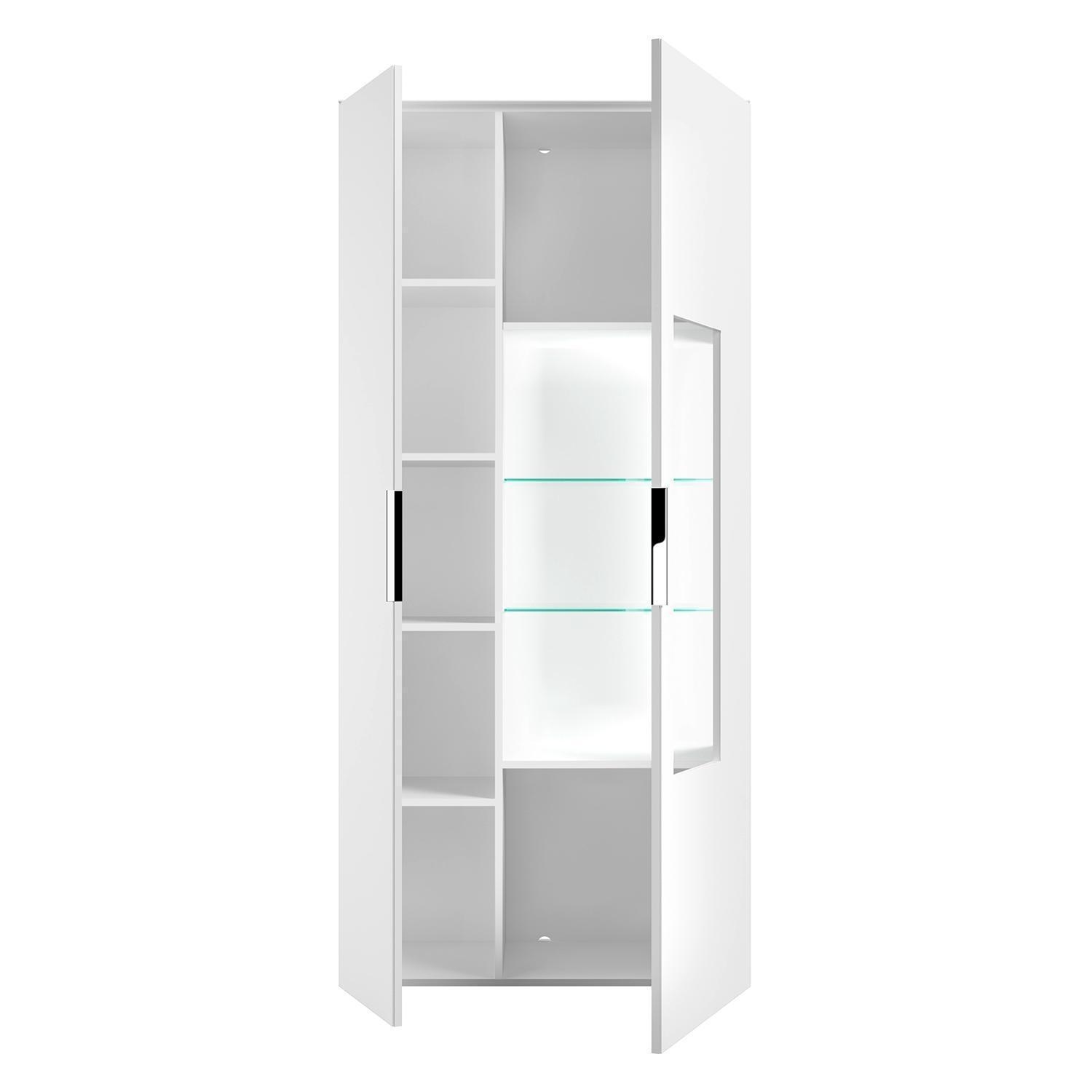 | Lieferumfang: | 1 Vitrine mit 1 Tür, 1 Glastür, 2 Glasböden und 6 Einlegeböden. Die LED-Beleuchtung ist enthalten |