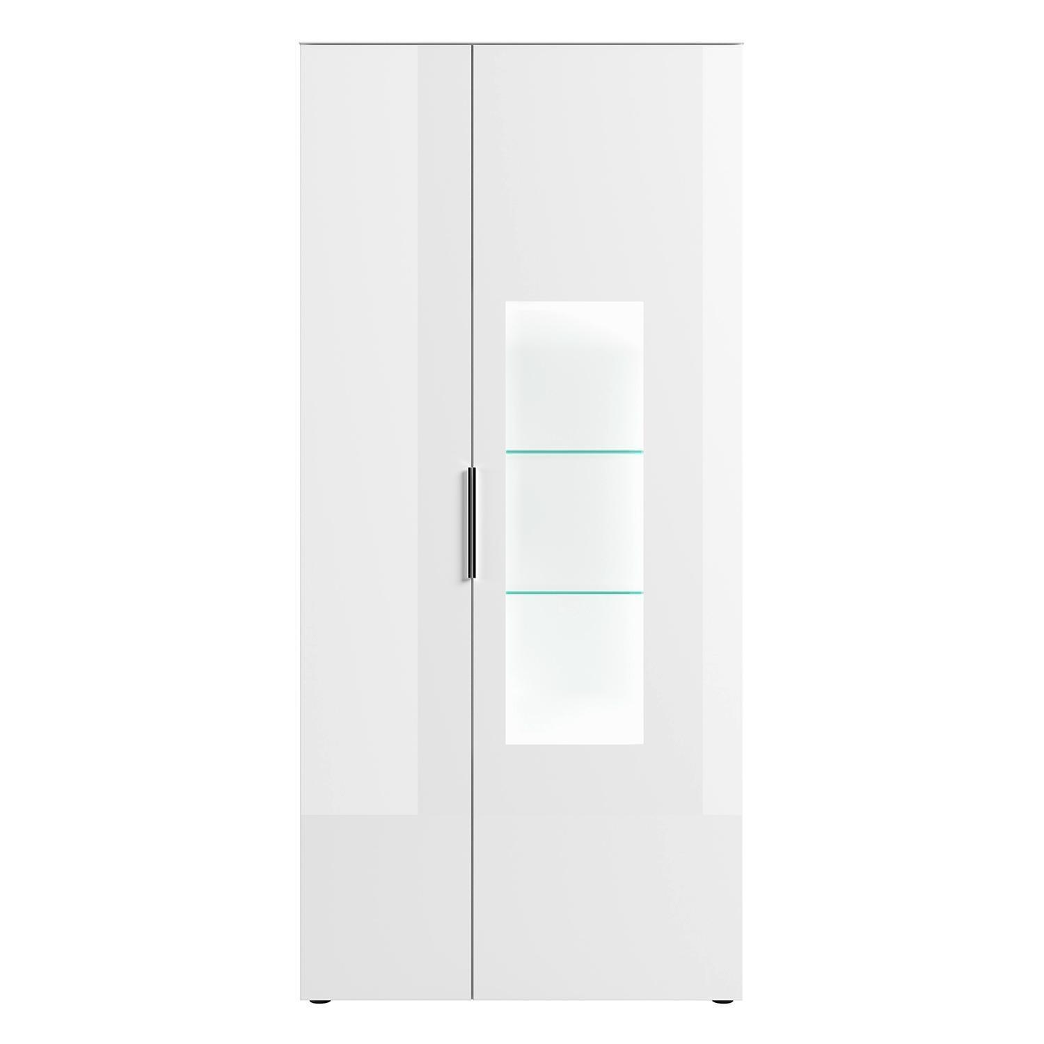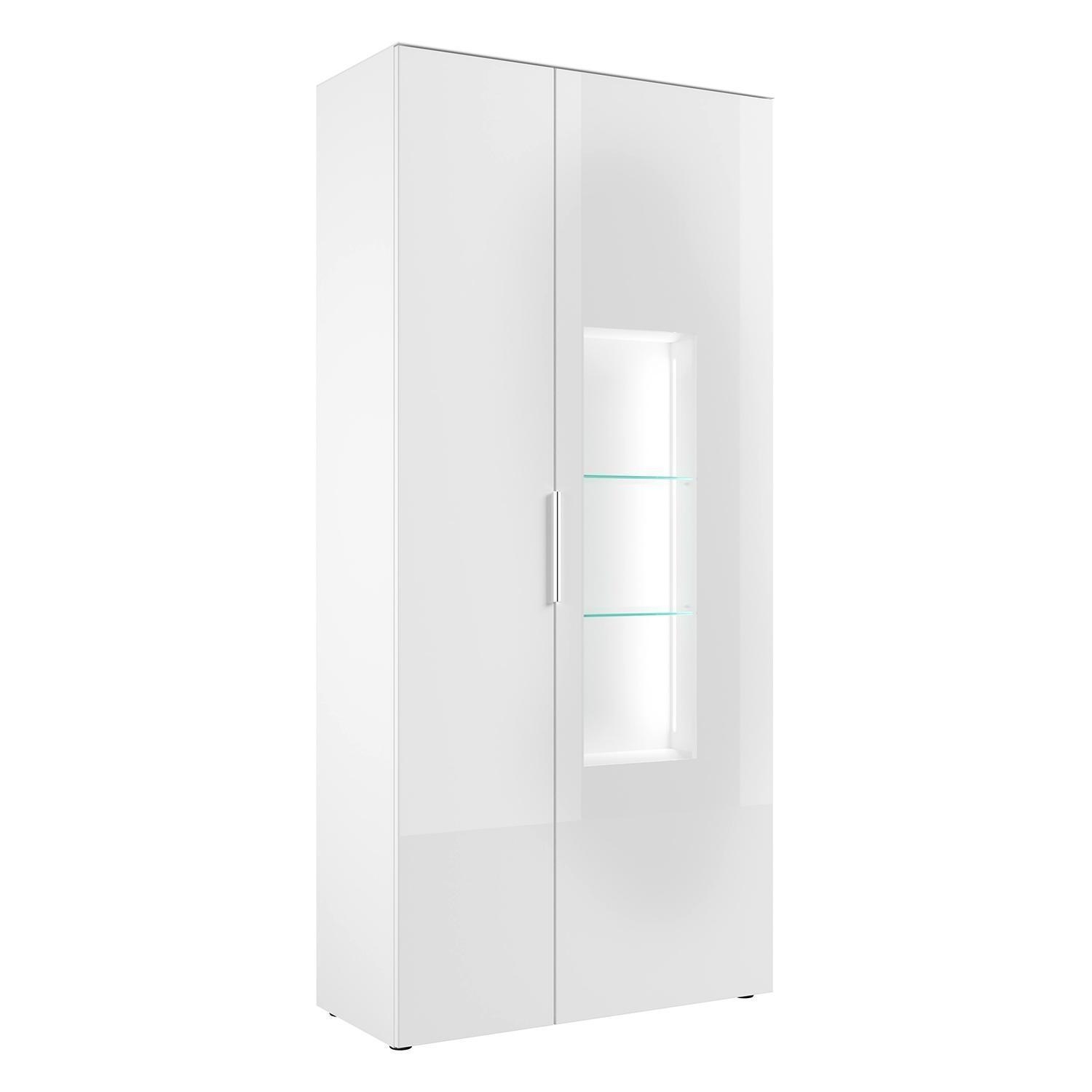 90 x 197 cm - 2 Türen - Weiß matt - Weißglas - mit LED-Beleuchtung