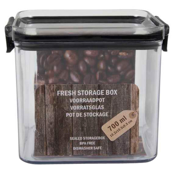 Das Vorratsglas KARSTO mit einem Fassungsvermögen von 700 ml eignet sich ideal zur Aufbewahrung von Nudeln, Reis, Quinoa, Linsen und vielem mehr. Gefertigt aus transparentem Kunststoff, bietet es jederzeit einen Blick auf den Inhalt. Der schwarze Deckel mit praktischem Klippverschluss sorgt für eine luftdichte Versiegelung. Mit den Maßen 10 cm Breite, 9,5 cm Höhe und 10 cm Tiefe passt es perfekt in jede Küche und spart Platz.
